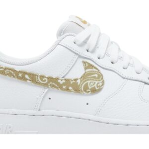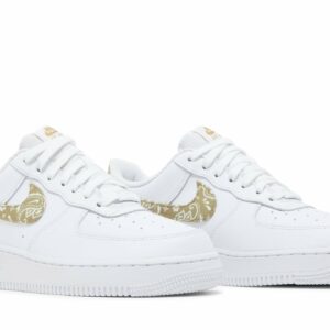 Introducing the Nike Air Force 1 Low Olive Paisley sneakers for women. Designed by Nike, these stylish sneakers feature a unique olive paisley pattern that adds a touch of flair to any outfit. Made with quality materials, these sneakers offer both comfort and durability. Step out in style with the Nike Air Force 1 Low Olive Paisley sneakers.