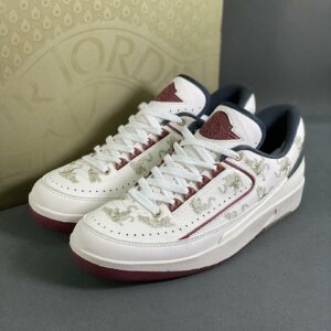 Air Jordan 2 Low “Year of the Dragon” FV5036-111 White Burgundy Embroidered Dragon Sneakers Men’s Women’s Chinese New Year Limited Edition