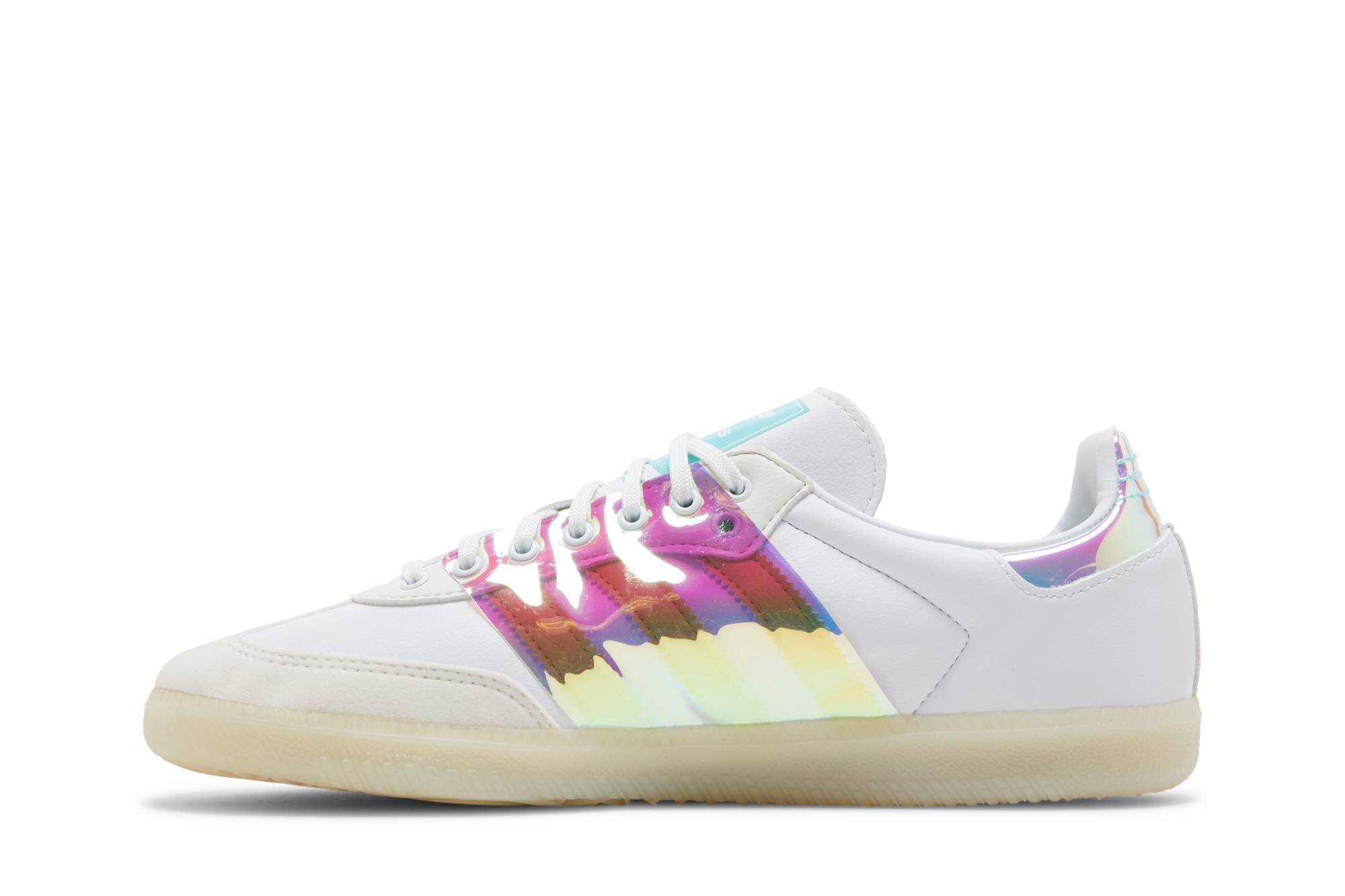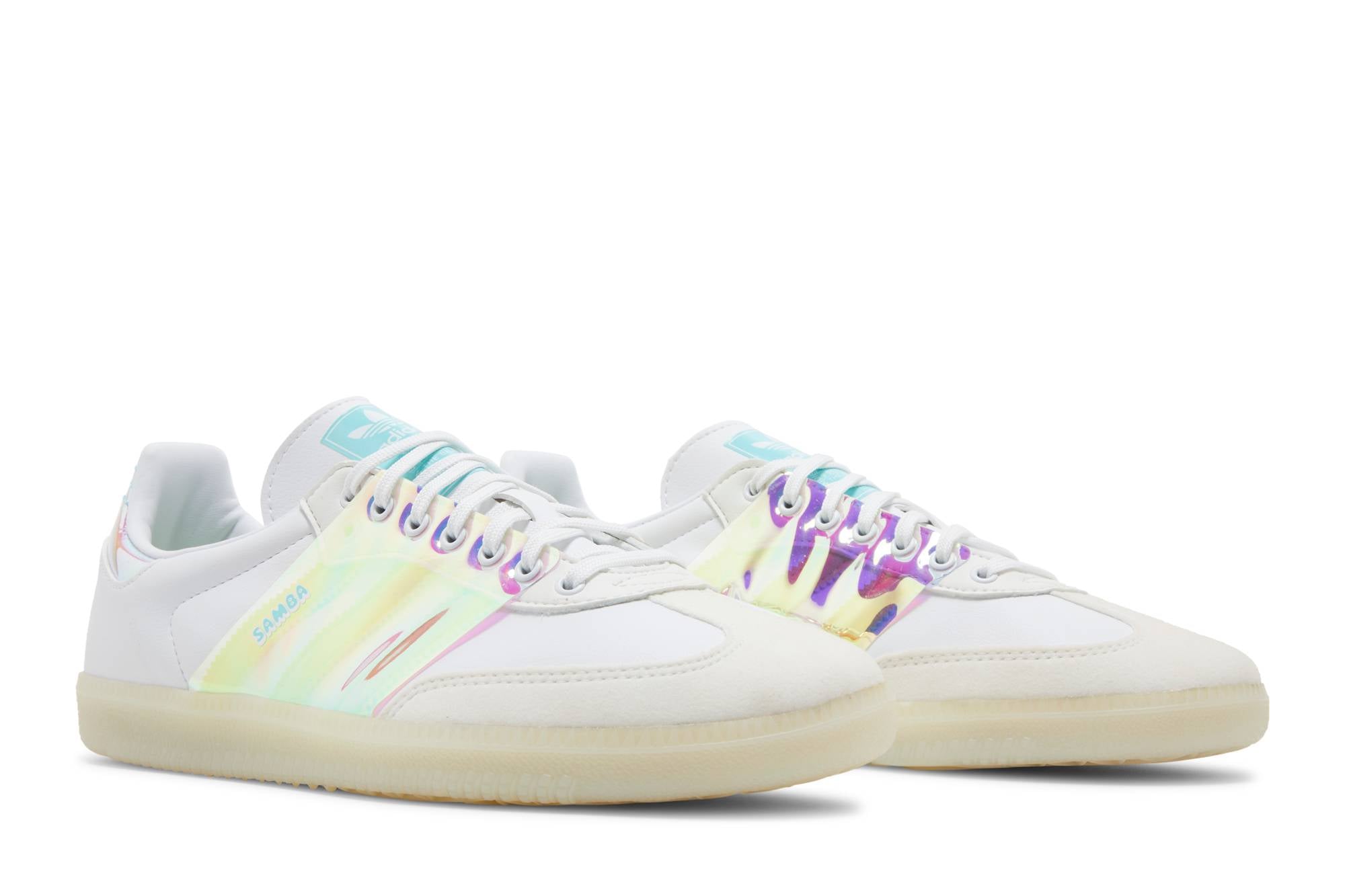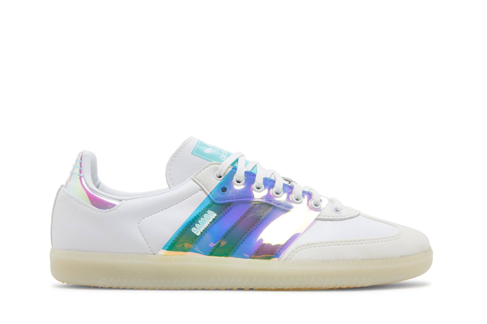 Introducing the adidas Samba OG White Iridescent sneakers, a stylish and versatile addition to your footwear collection. These sneakers from adidas feature a classic design with a modern twist, thanks to the iridescent detailing. With their comfortable fit and durable construction, these sneakers are perfect for everyday wear. Whether you’re running errands or hitting the town, these adidas Samba OG White Iridescent sneakers will elevate any outfit.