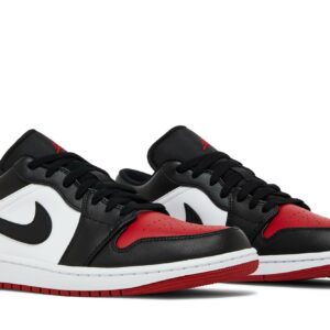 Introducing the Air Jordan 1 Low ‘Bred Toe 2.0’, a modern take on the iconic ’85 original. This sneaker blends classic elements with fresh updates, featuring a black and red leather upper, white midsole, and iconic Nike swoosh. Its low-cut design offers mobility and comfort, while the durable construction ensures longevity. Experience the legendary style and comfort of the Air Jordan 1, now in a sleek and refreshed low-top version. Elevate your sneaker game with the Air Jordan 1 Low ‘Bred Toe 2.0’ today!