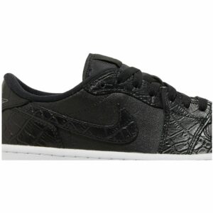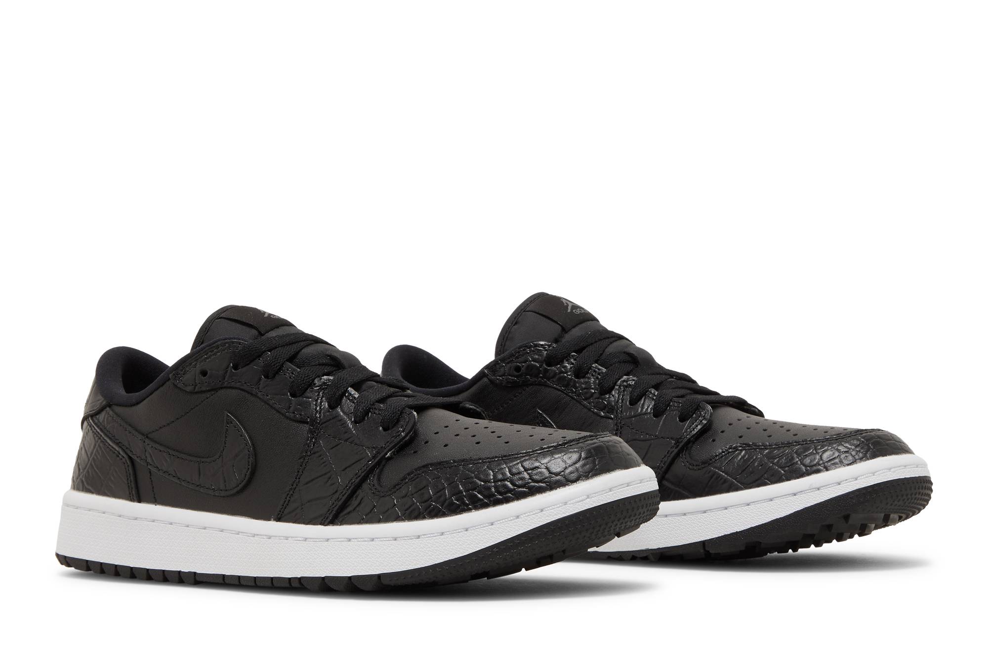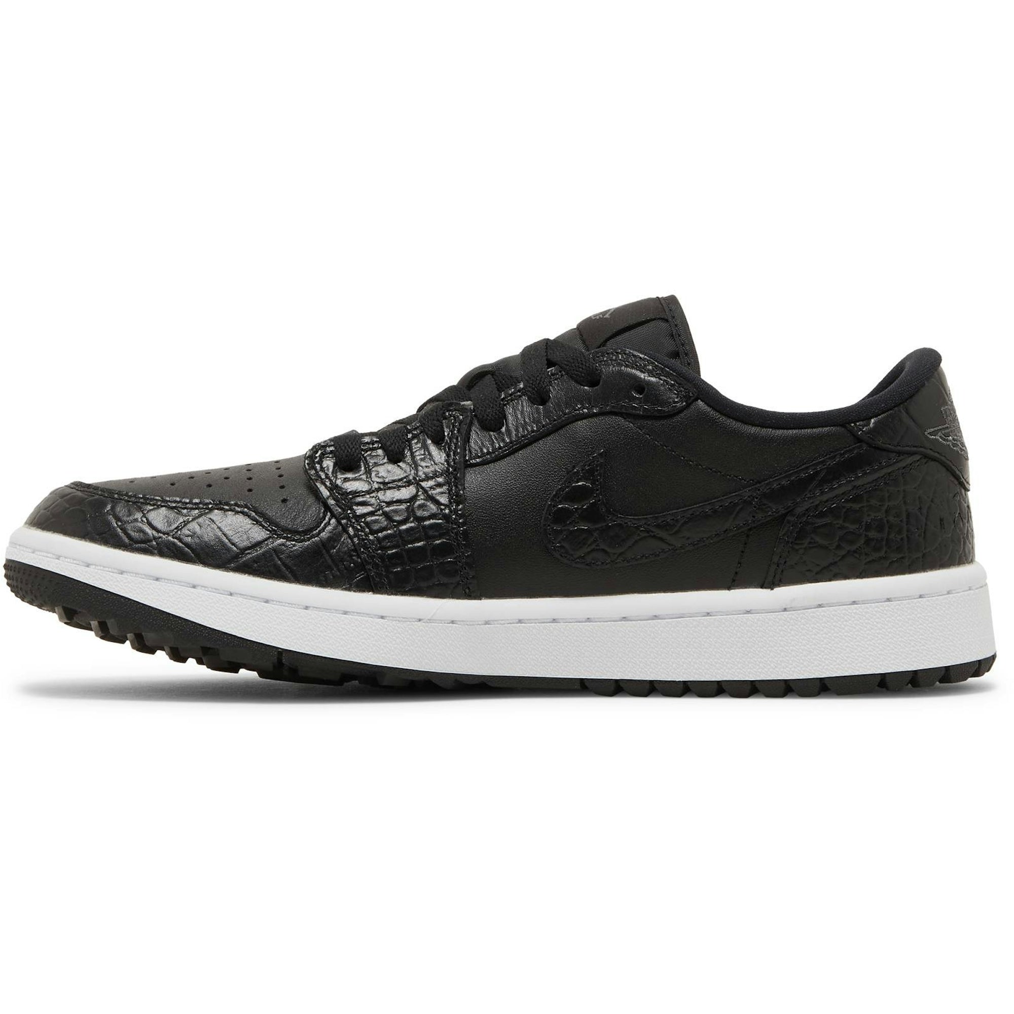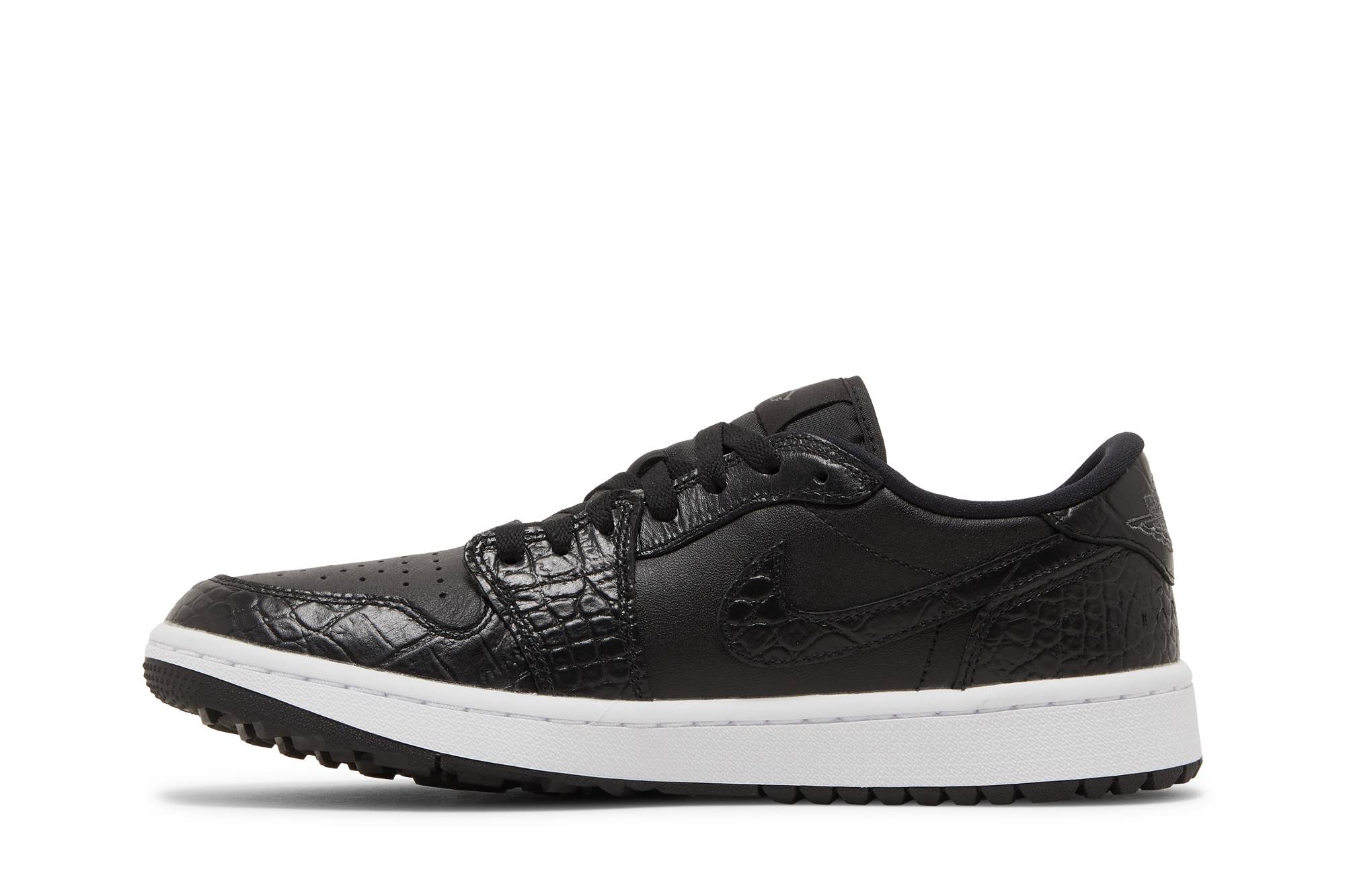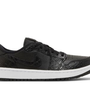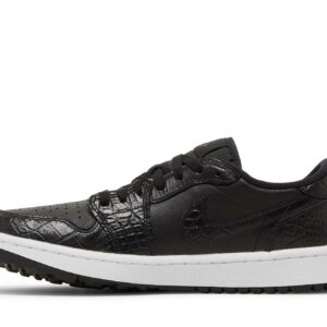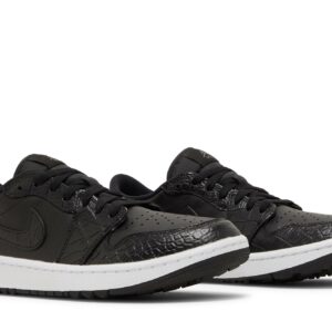 The Air Jordan 1 Low Golf Black Croc by Jordan is a sleek and stylish sneaker perfect for the golf course. Designed with a black crocodile texture, these shoes not only offer a unique and fashionable look but also provide excellent performance and comfort. Get ready to tee off in style with these must-have sneakers.