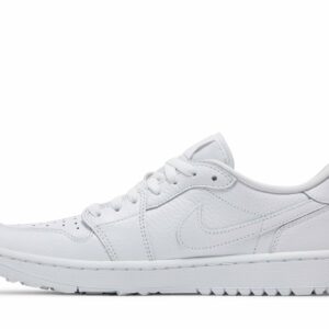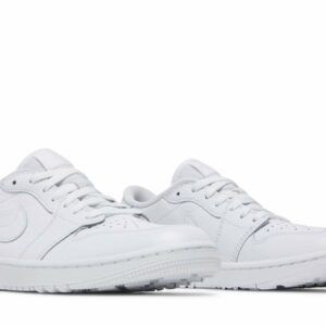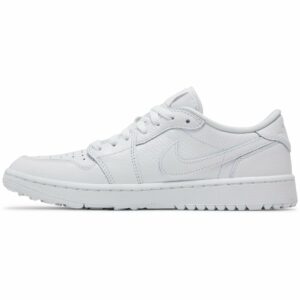 The Air Jordan 1 Low Golf Triple White by Jordan is a stylish and functional sneaker perfect for the golf course. With its clean white design and iconic Air Jordan 1 silhouette, this shoe is a must-have for golfers who want both comfort and style. Its low-top design provides flexibility and freedom of movement, while the durable construction ensures lasting performance. Whether you’re on the fairway or on the street, these sneakers are sure to turn heads.