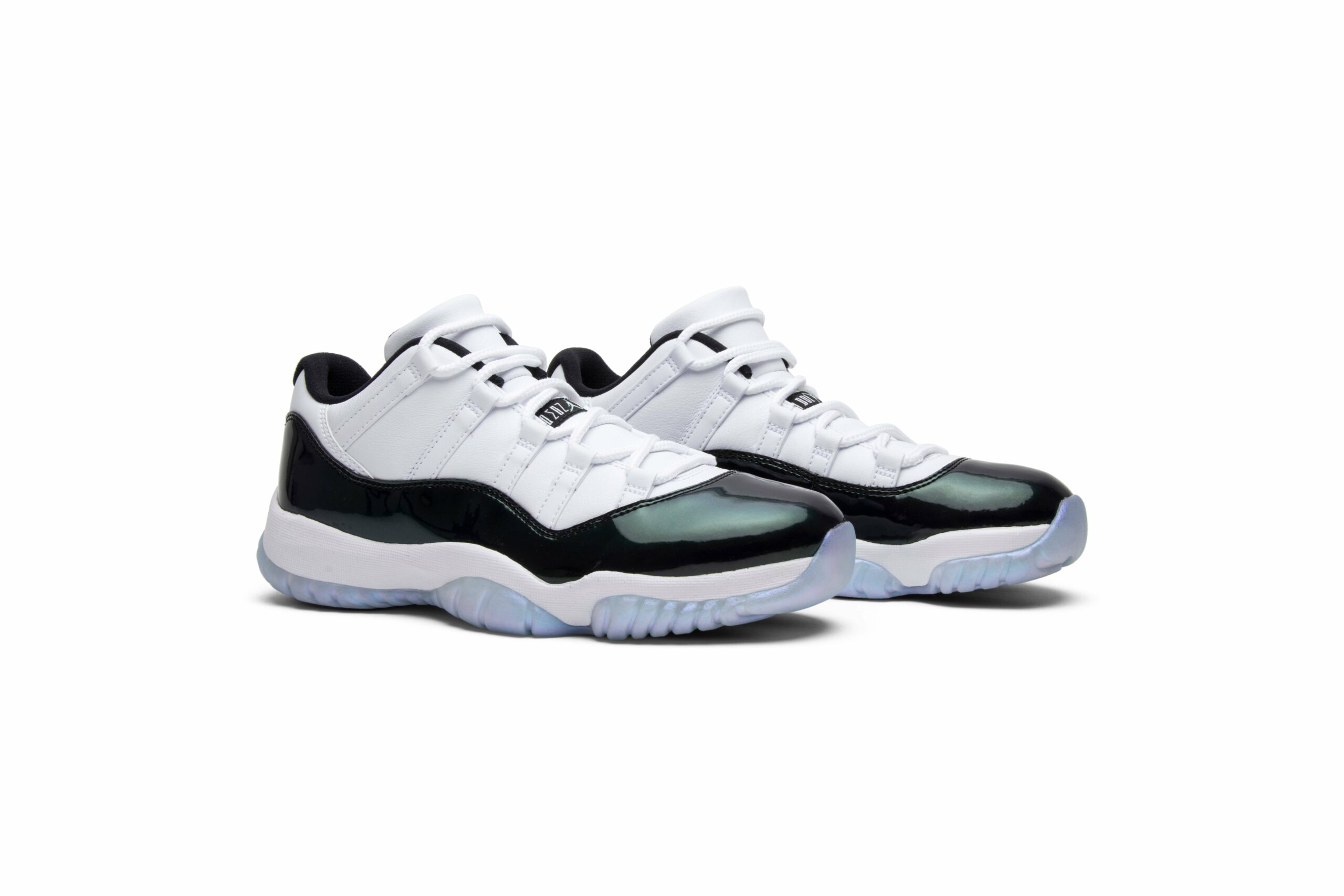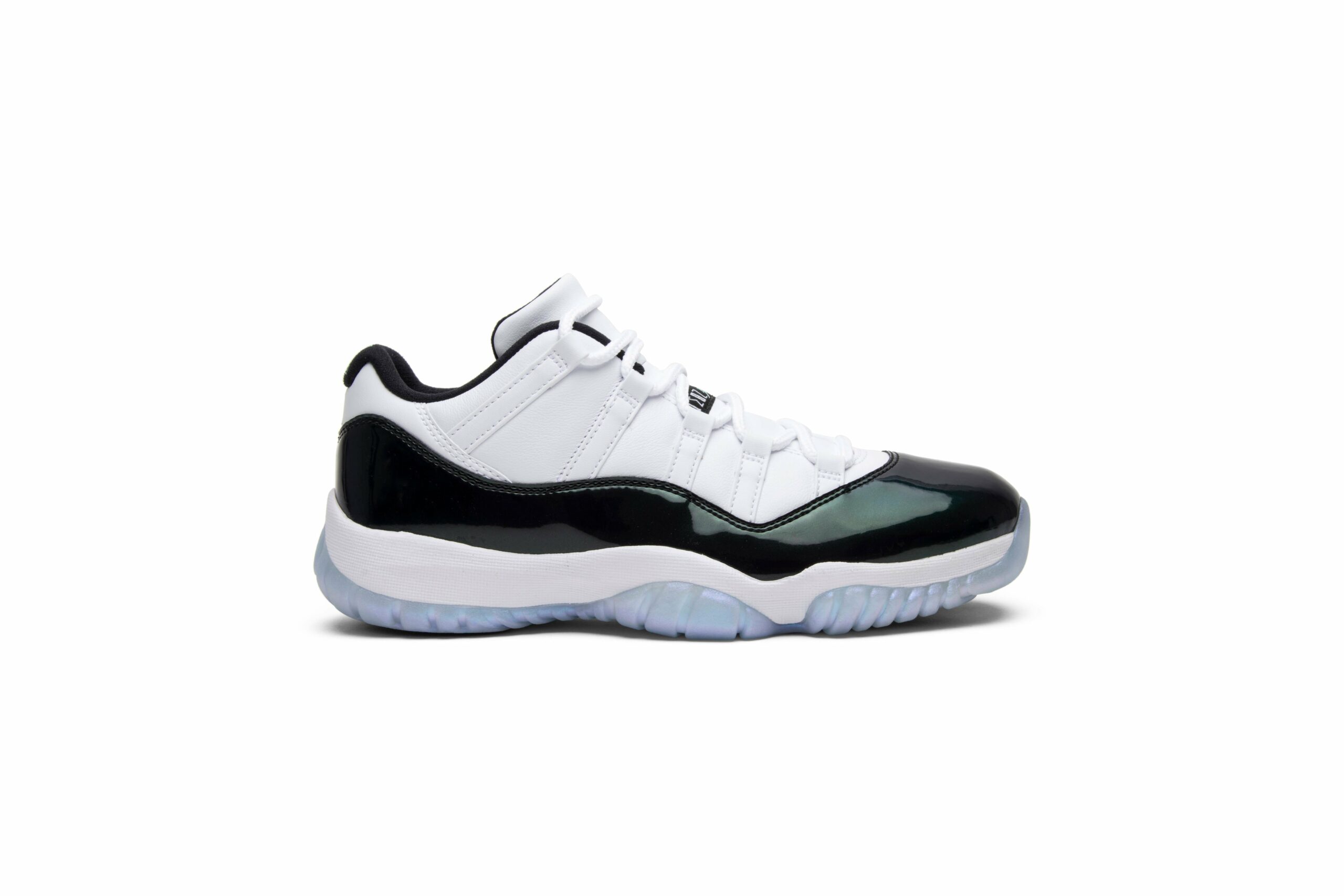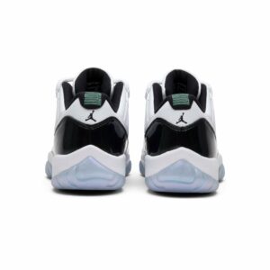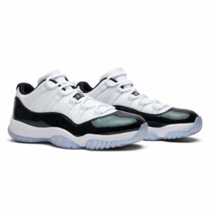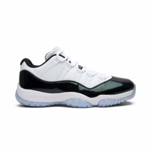 The Air Jordan 11 Retro Low Emerald, also known as Emerald, is a stylish shoe from the Jordan brand. With a sleek white color and retro design, these shoes are perfect for both athletic activities and casual wear. Add a touch of elegance to your outfit with these iconic sneakers.