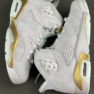 Step into an icon with the **Air Jordan 6 Retro Sail Metallic Gold Suede Sneakers**, now available at AllStarShirt Store. This legendary silhouette, celebrated for its distinctive design and unparalleled heritage, makes a triumphant return with a luxurious twist. Crafted for those who appreciate both premium style and enduring comfort, these sneakers are more than just footwear – they’re a statement. Elevate your collection and experience the fusion of athletic innovation and sophisticated street style that only the Air Jordan 6 can deliver. Perfect for sneakerheads and fashion-forward individuals, this edition blends a timeless aesthetic with opulent details, ensuring you stand out from the crowd.