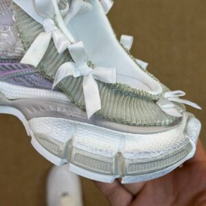 | Upper Material | Breathable Mesh, Synthetic Overlays, Floral Lace, Iridescent Accents, Bow Embellishments |