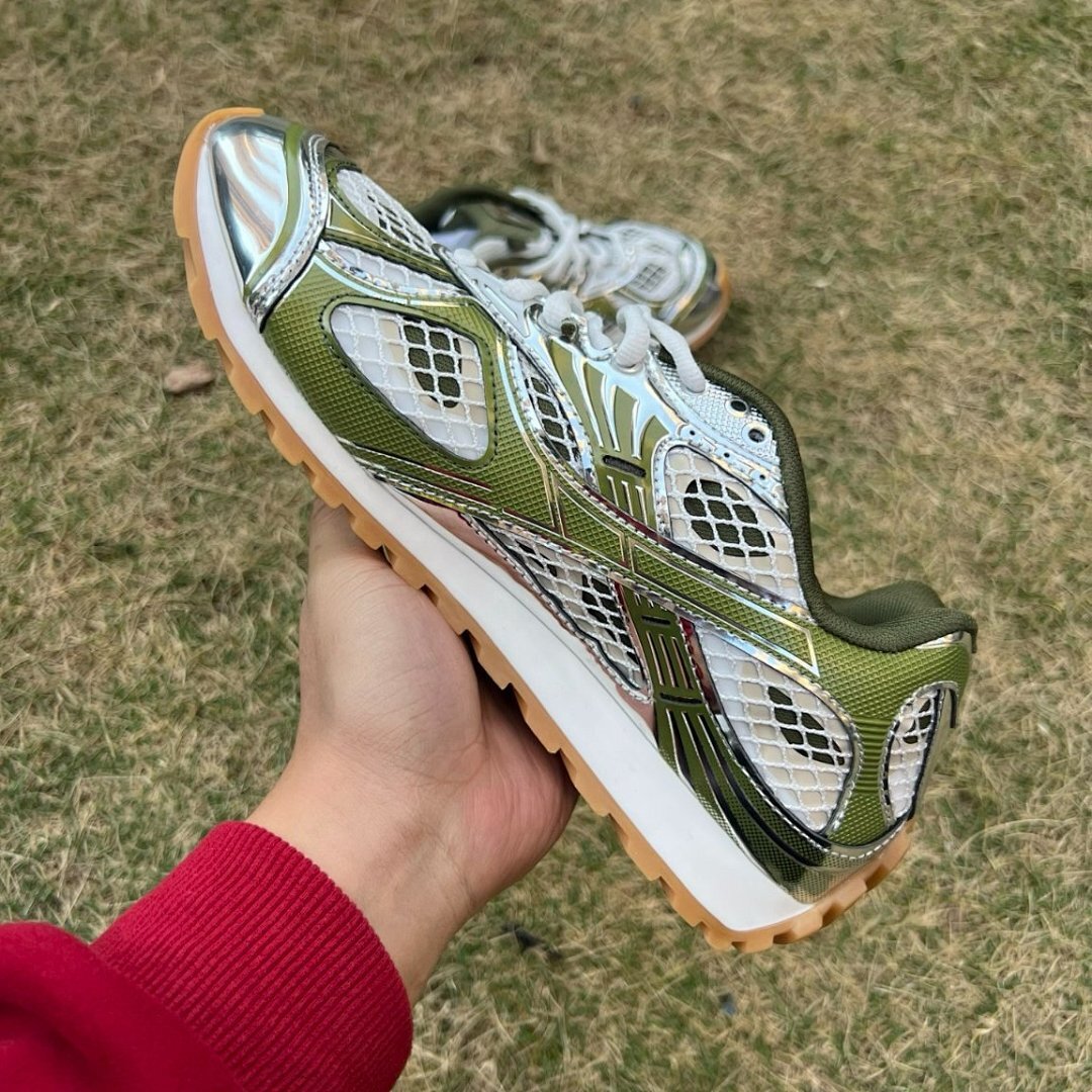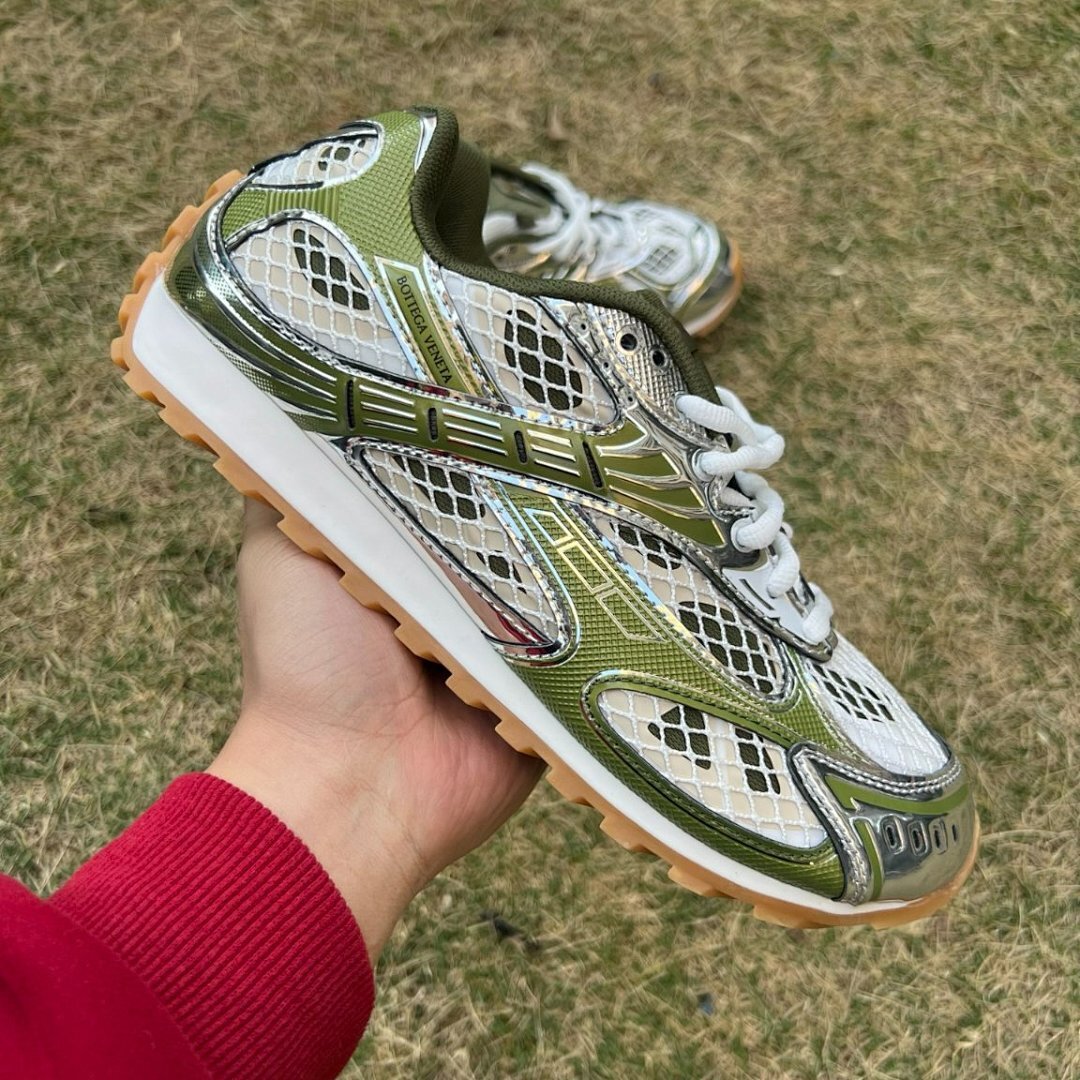 Step into a new dimension of luxury and avant-garde style with the Bottega Veneta Orbit Sneakers. These meticulously crafted sneakers are more than just footwear; they are a statement of sophisticated individuality and cutting-edge design. Featuring a captivating blend of Kiwi, Silver, and Fondant hues, the Orbit Sneakers are engineered for the discerning individual who demands unparalleled comfort without compromising on distinctive aesthetics. Elevate your urban wardrobe and experience the pinnacle of Italian craftsmanship, designed to turn heads and provide an exceptional wearing experience from the first step.