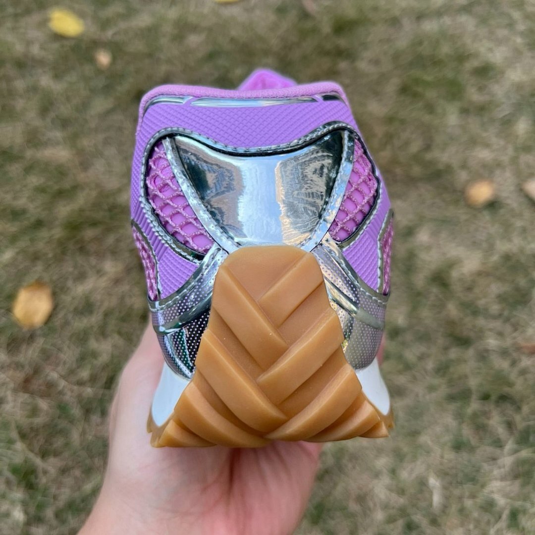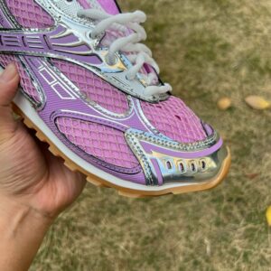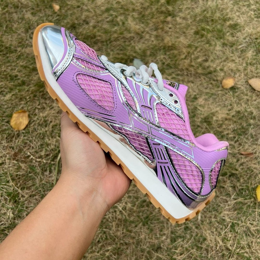- Luxurious Metallic Mesh Upper: Adorned with a mesmerizing lavender and silver metallic mesh, providing a futuristic, eye-catching shimmer.