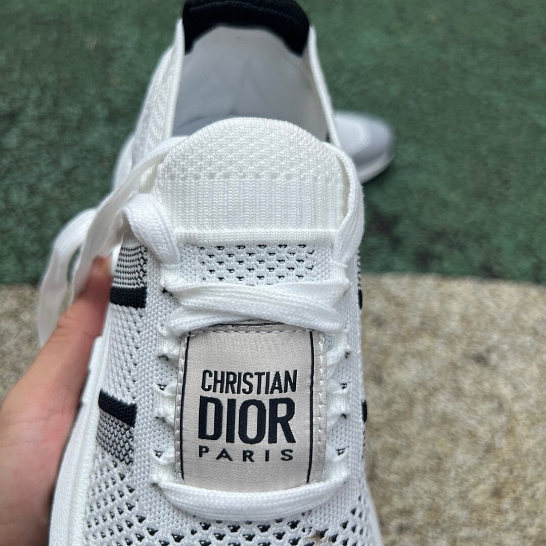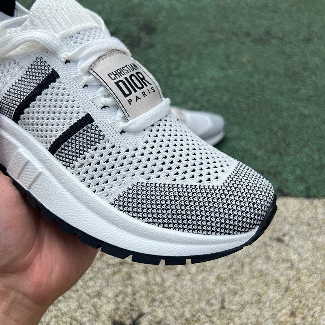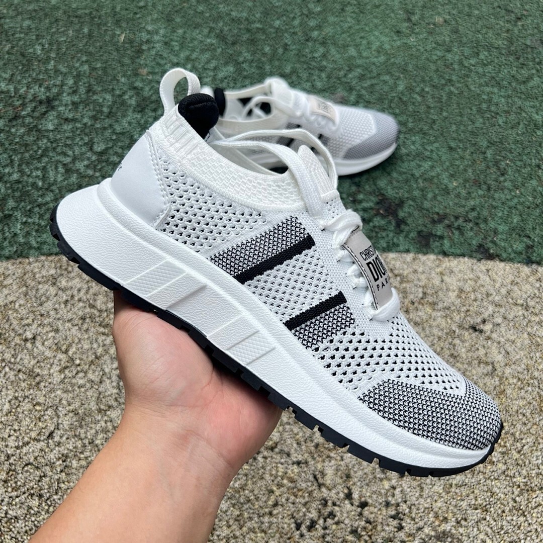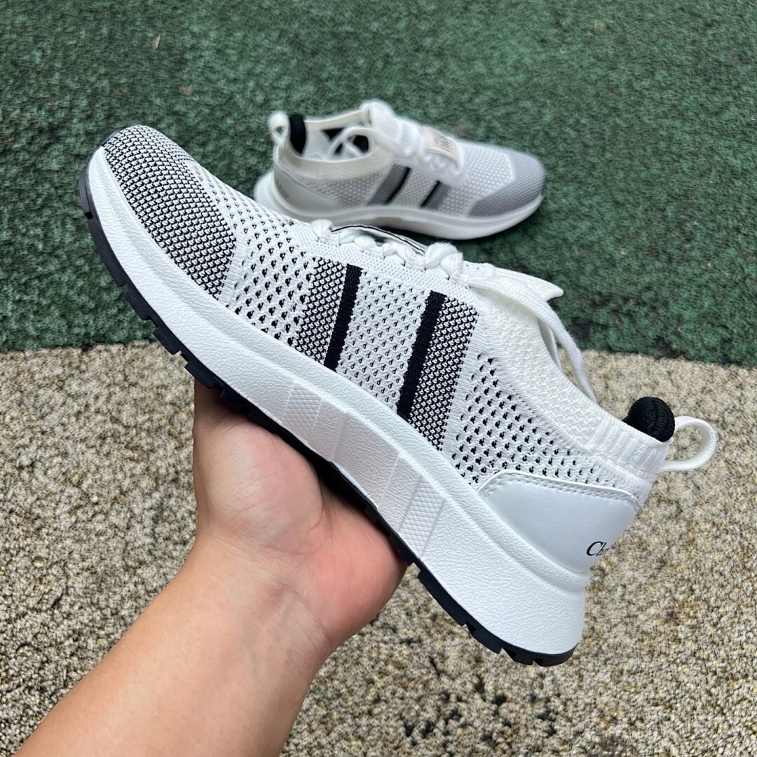 Christian Dior Paris White Black Knit 3-Stripe Sneakers