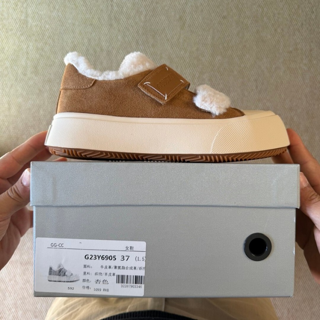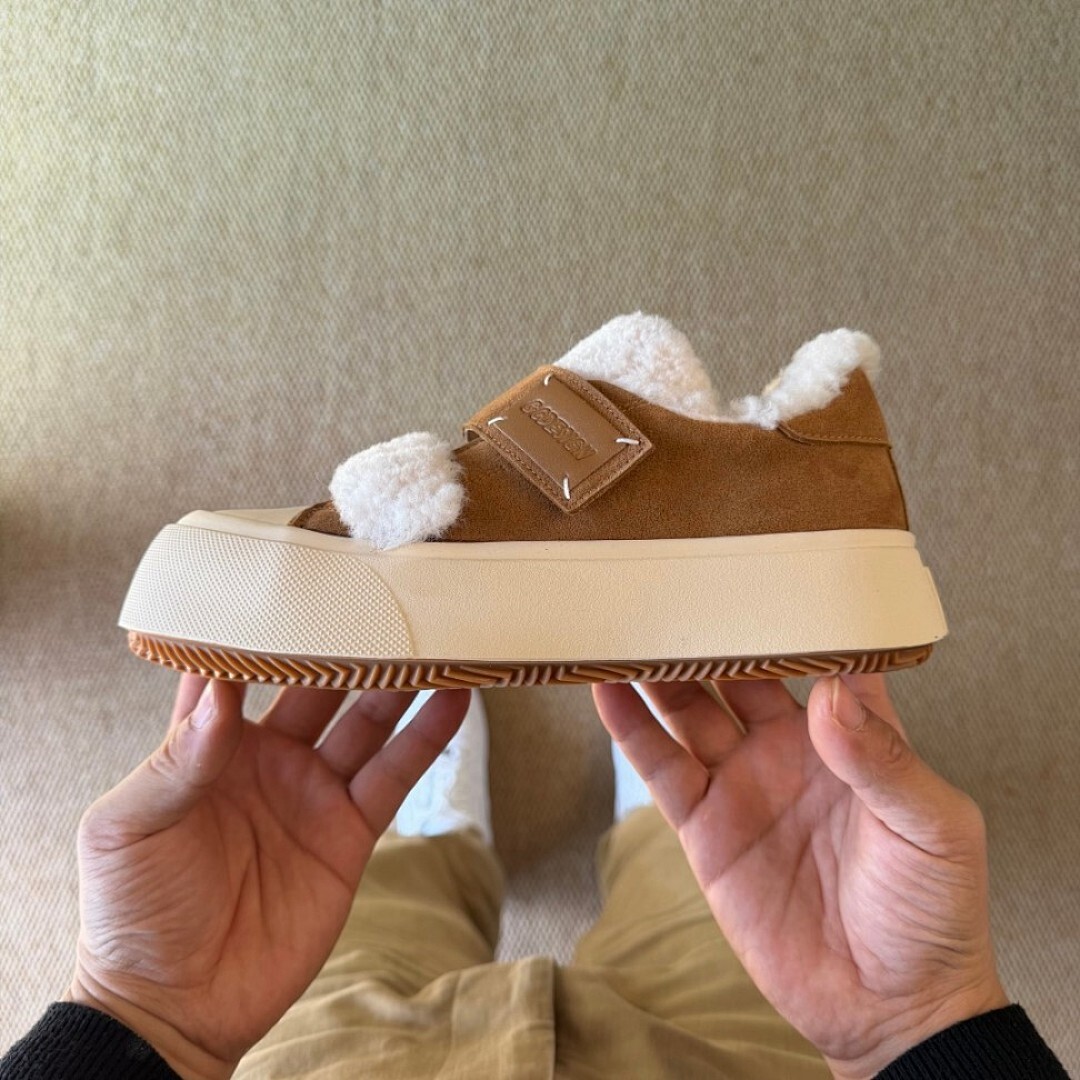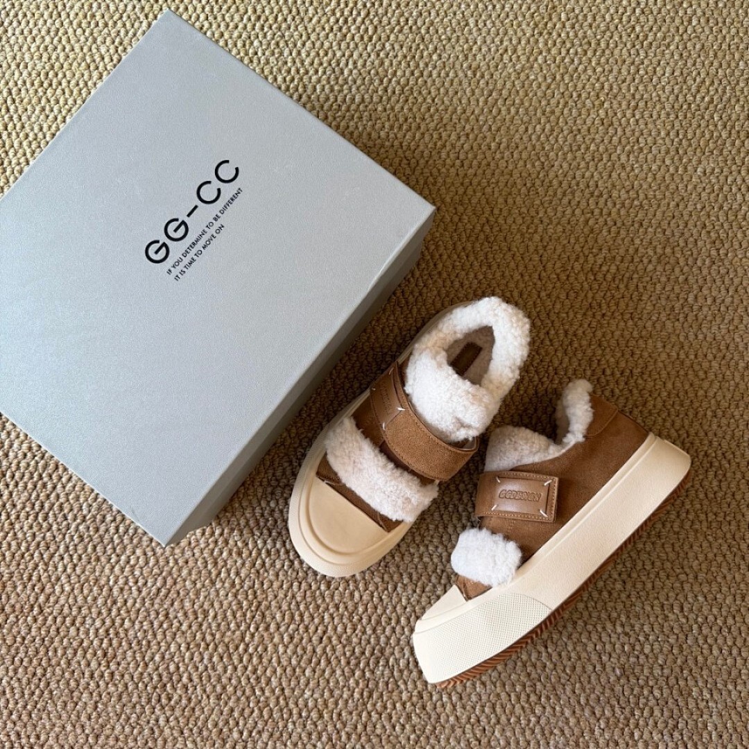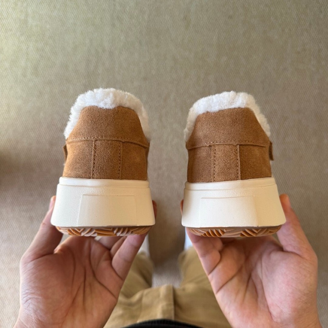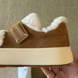 GOODBYE LULU Lamb Wool Suede Fluffy Platform Slippers Brown Shearling Mules Slip-On