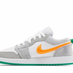 Introducing the Air Jordan 1 Low ‘Rabbit’ sneaker, designed for excellence on and off the court. With its classic silhouette and playful rabbit-inspired accents, these shoes exude both style and athleticism. Featuring a durable leather upper, breathable mesh paneling, and a cushioned midsole for all-day comfort. The iconic Swoosh logo and Jumpman branding elevate the design, making these sneakers a must-have addition to any collection. Perfect for grade schoolers who want to stand out and make a statement on the playground or beyond.