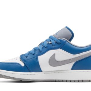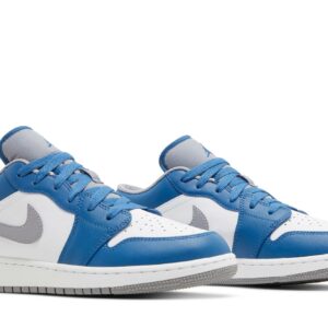 The Air Jordan 1 Low True Blue Cement (GS) is a stylish sneaker from the Jordan brand. Designed with a low-top profile, these sneakers feature the iconic Jordan logo on the side and a true blue cement colorway. Made with high-quality materials, these sneakers offer both comfort and durability. Perfect for both casual and sporty looks, these sneakers are a must-have for any sneaker enthusiast.