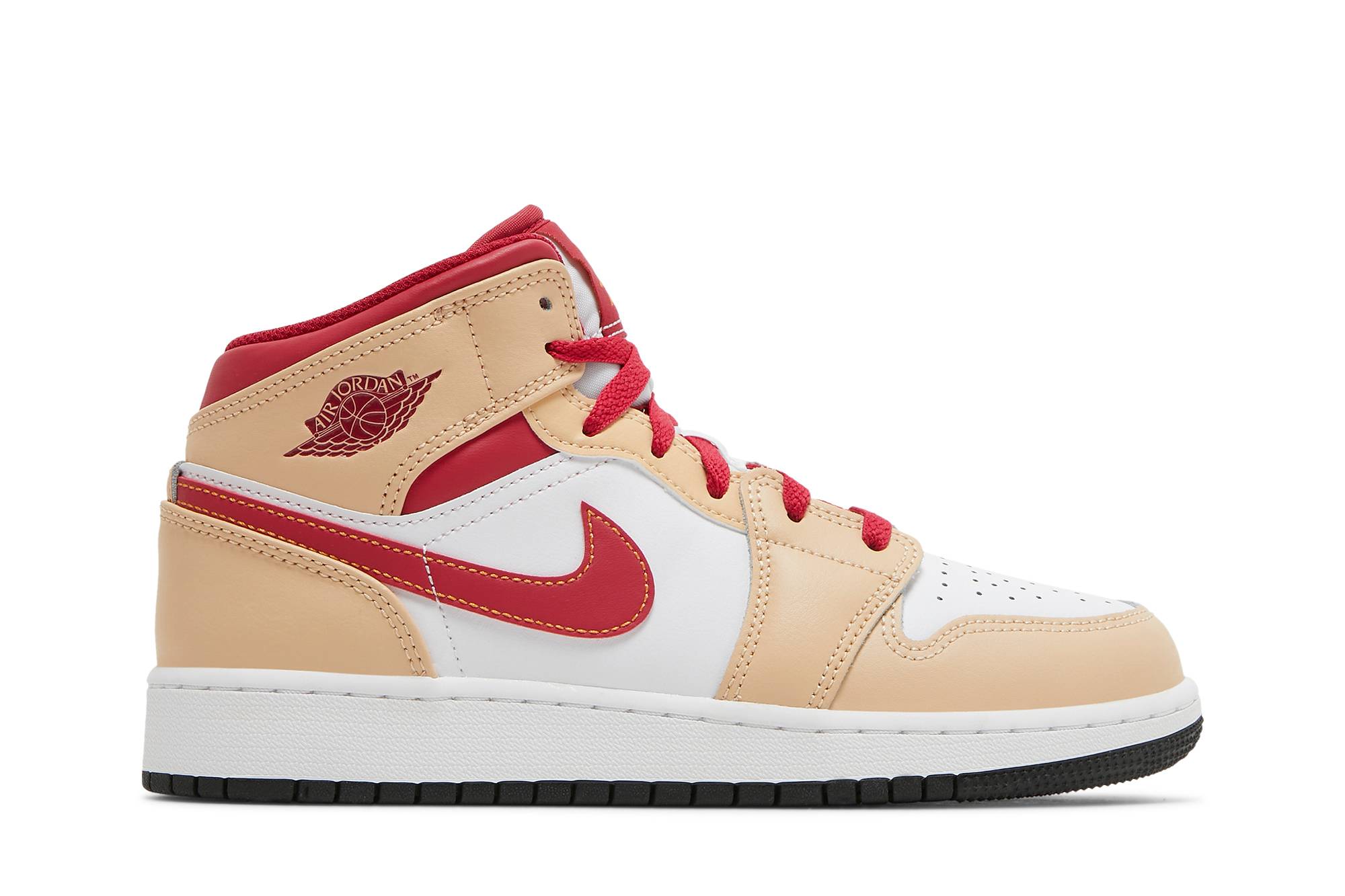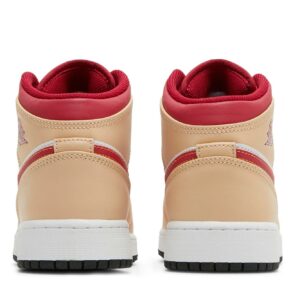 Step up your little one’s style game with the Air Jordan 1 Mid ‘Beige Red’, a scaled-down version of the iconic silhouette. This kid-friendly sneaker boasts a classic beige leather upper with vibrant red accents, capturing the essence of Jordan heritage. Its durable construction and cushioned sole ensure comfort throughout the day, while the iconic Jumpman logo adds a touch of athletic flair. Perfect for young sneaker enthusiasts and style-conscious kids alike, these Air Jordan 1 Mids will elevate any wardrobe.