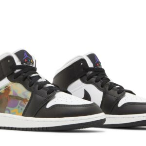 The Air Jordan 1 Mid Hologram (GS) by Jordan is a sleek and stylish sneaker that combines comfort and style. With its holographic accents, this shoe is perfect for those looking to make a statement. Its iconic Air Jordan branding and premium construction make it a must-have for sneaker enthusiasts.