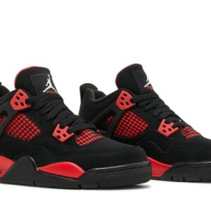 Introducing the Air Jordan 4 Retro Red Thunder (GS) sneakers by Jordan. These stylish and iconic sneakers feature a bold red and black colorway, with the classic Jordan logo. Made with high-quality materials, they provide superb comfort and durability. Perfect for both sports and casual wear, these sneakers are a must-have for any sneaker enthusiast.