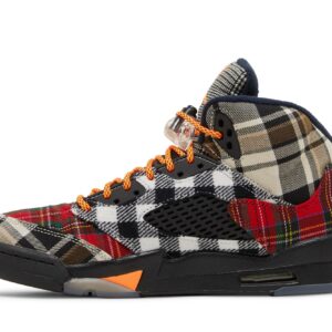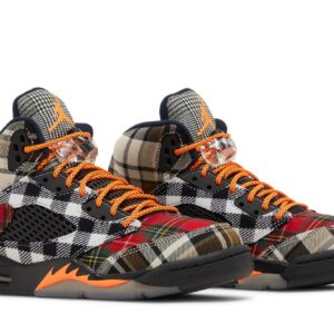 Elevate your young athlete’s style with the iconic Air Jordan 5 Retro ‘Plaid’ sneakers. Featuring a bold black base highlighted by a vibrant plaid pattern, these sneakers offer a modern twist on a classic silhouette. Enhanced with signature elements like the translucent outsole, lace locks, and reflective tongue, they provide both style and performance. The durable construction and supportive cushioning ensure a comfortable fit for active kids, making them the perfect choice for both the playground and the streets.