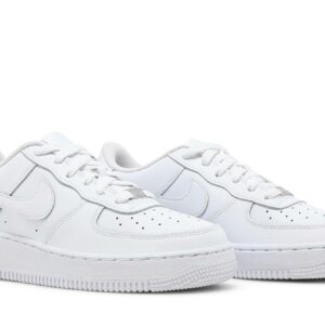 Introducing the Nike Air Force 1 LE Triple White (GS) sneakers. Designed by Nike, these sneakers are a must-have for fashion-forward individuals. Featuring a sleek all-white design, these shoes offer a classic and modern look. Perfect for everyday wear, these sneakers combine style with comfort. Step out in style with the Nike Air Force 1 LE Triple White (GS) sneakers.