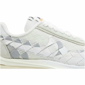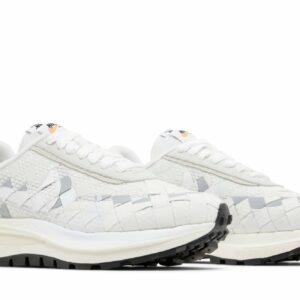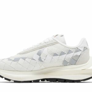 Step into the fusion of iconic streetwear and Parisian haute couture with the Jean Paul Gaultier x sacai x Nike VaporWaffle Woven “White.” This limited-edition sneaker boasts a striking blend of rugged textures and bold colors, featuring a breathable woven upper, dual Swooshes, and a stacked VaporWaffle sole. Experience a symphony of Japanese craftsmanship, Parisian flair, and athletic prowess in every stride. Elevate your style and conquer the streets with this coveted collaboration that transforms the ordinary into the extraordinary.