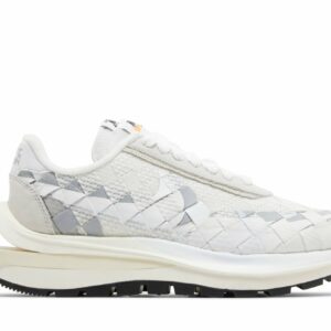 Step into the fusion of iconic streetwear and Parisian haute couture with the Jean Paul Gaultier x sacai x Nike VaporWaffle Woven “White.” This limited-edition sneaker boasts a striking blend of rugged textures and bold colors, featuring a breathable woven upper, dual Swooshes, and a stacked VaporWaffle sole. Experience a symphony of Japanese craftsmanship, Parisian flair, and athletic prowess in every stride. Elevate your style and conquer the streets with this coveted collaboration that transforms the ordinary into the extraordinary.