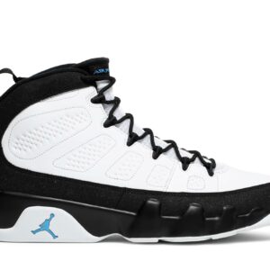 Introducing the Air Jordan 9 Retro University Blue, also known as the University Blue, from the iconic Jordan brand. This sneaker features a sleek white colorway, making it perfect for any stylish outfit. Grab a pair of these retro kicks and stand out with the classic Jordan style.