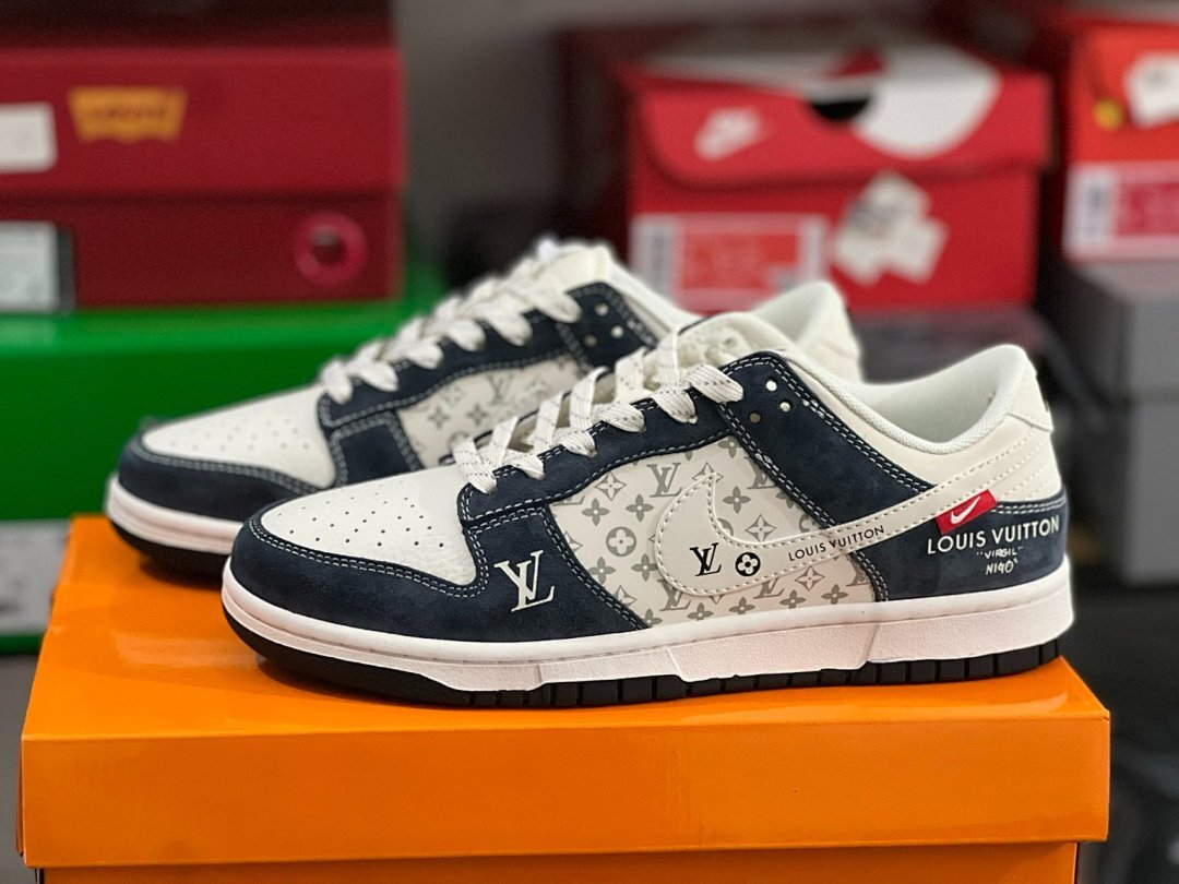 | Product Name | Louis Vuitton Nike Dunk Low Virgil Monogram Navy Cream Sneakers |