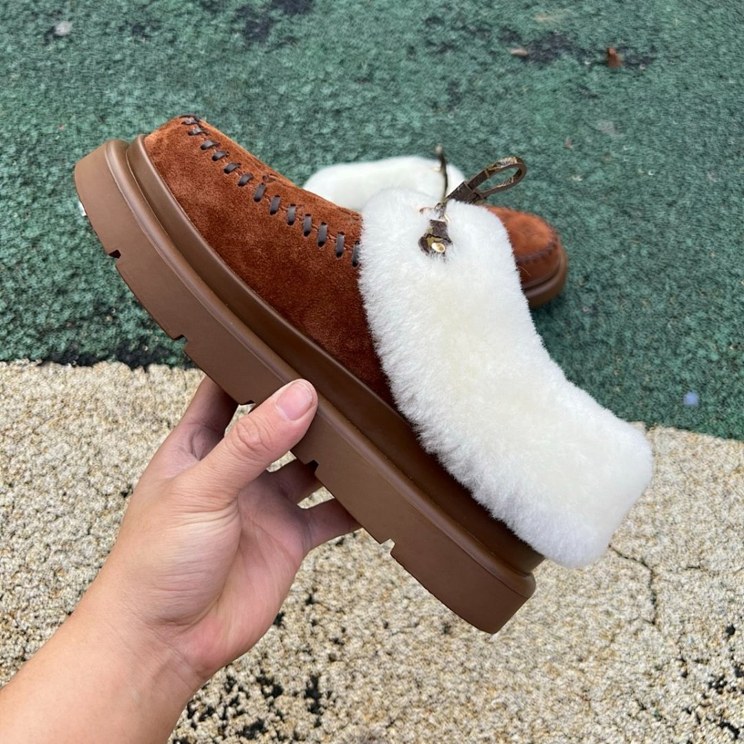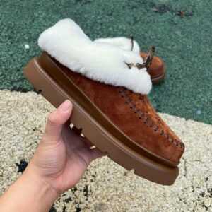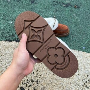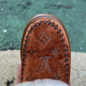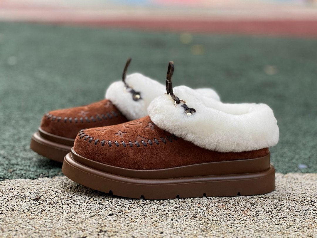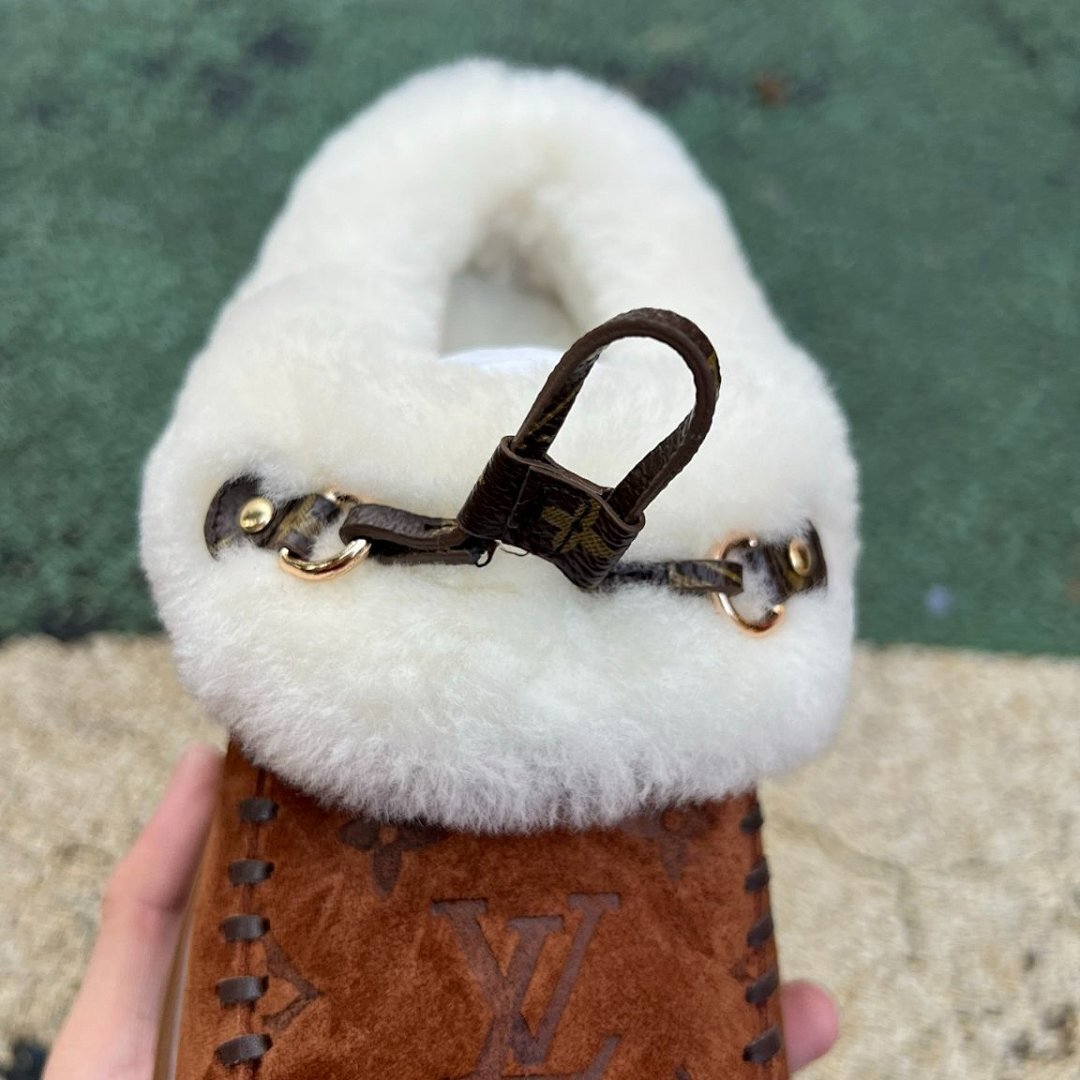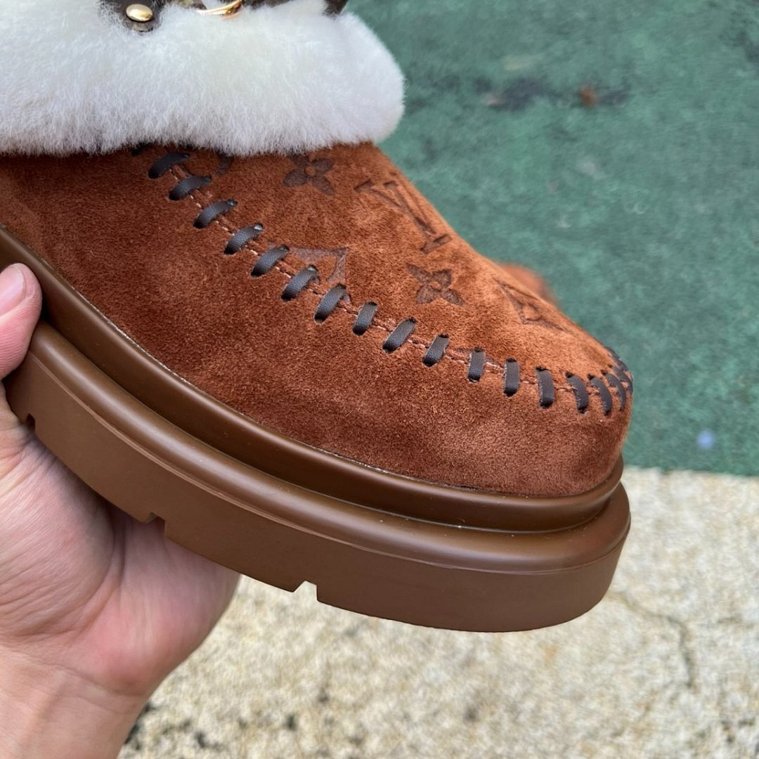Louis Vuitton Pillow Comfort Flat Mules Brown Cognac Suede Shearling Fur-Lined Moccasins Winter Slippers 1A9C8D