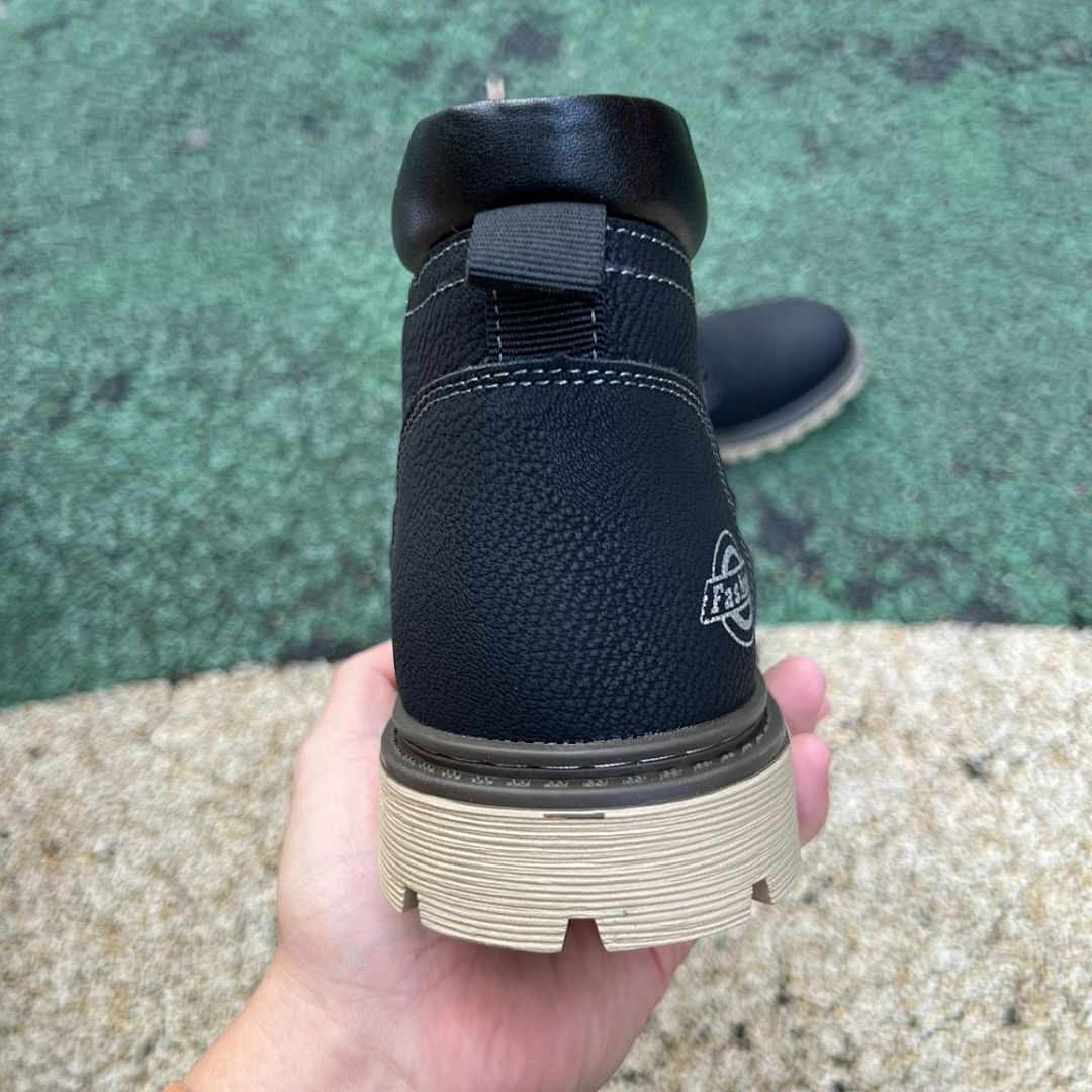 Step into confidence and conquer any terrain with the Men’s Black Rugged Fashion Ankle Boots. Engineered for the modern man who values both sophisticated style and unwavering durability, these lace-up boots are your ultimate companion for urban exploration and outdoor adventures. The striking black upper is perfectly contrasted by a distinctive tan sole, creating a bold aesthetic that effortlessly transitions from a casual day out to more rugged environments. Experience the perfect fusion of fashion-forward design, lasting comfort, and robust construction, ensuring every step you take makes a statement.
