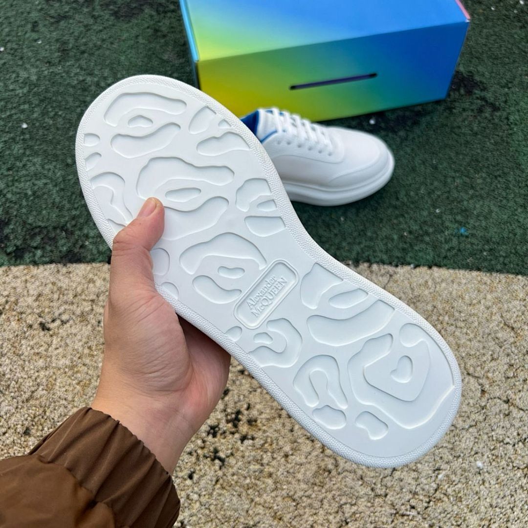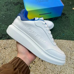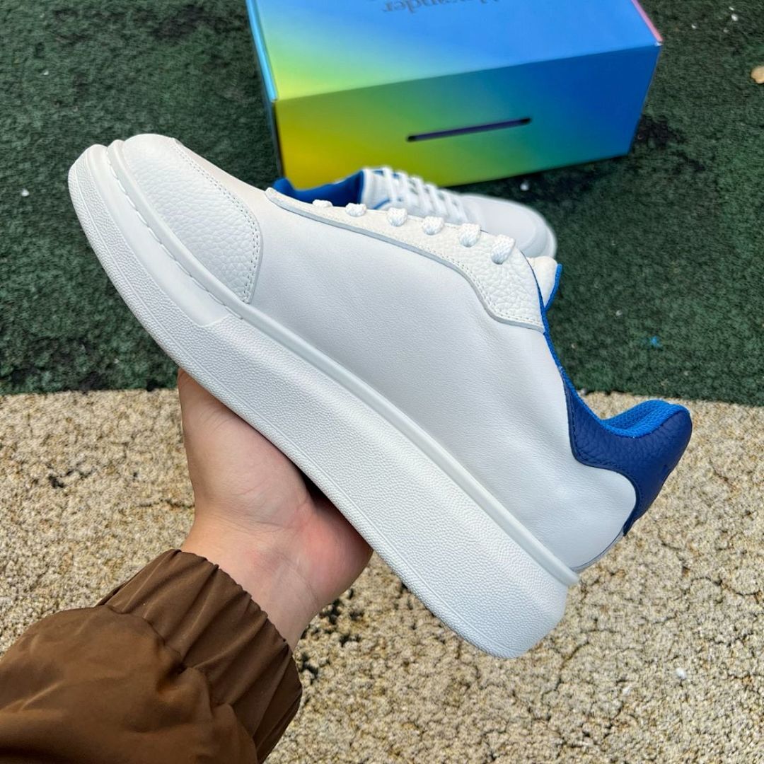 MQUEEN Oversized Platform Sneakers White Blue Leather Trainers