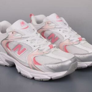 New Balance 530 White Pink Silver Metallic Retro Y2K Athletic Trainers