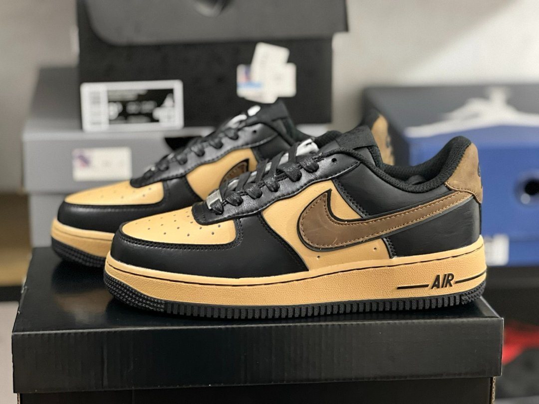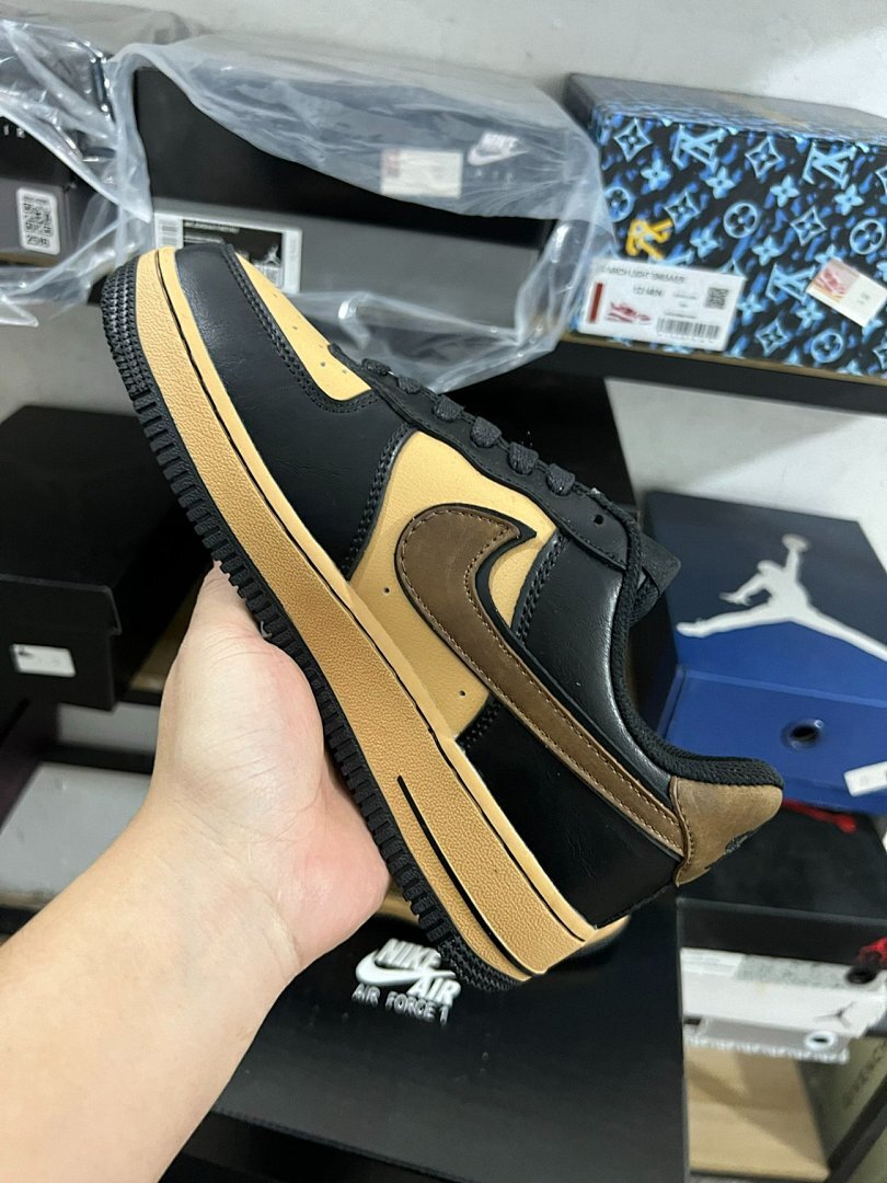 Nike Air Force 1 Low Black Light Brown Gum Medium Brown Sneakers (DN1430-001) AF1 Black Tan Dark Brown Mocha