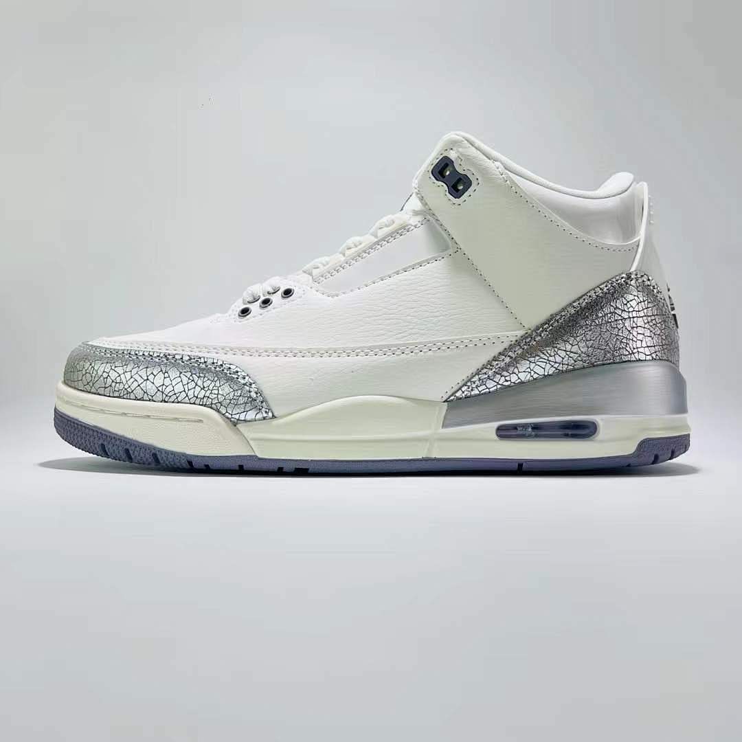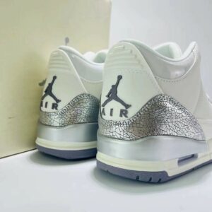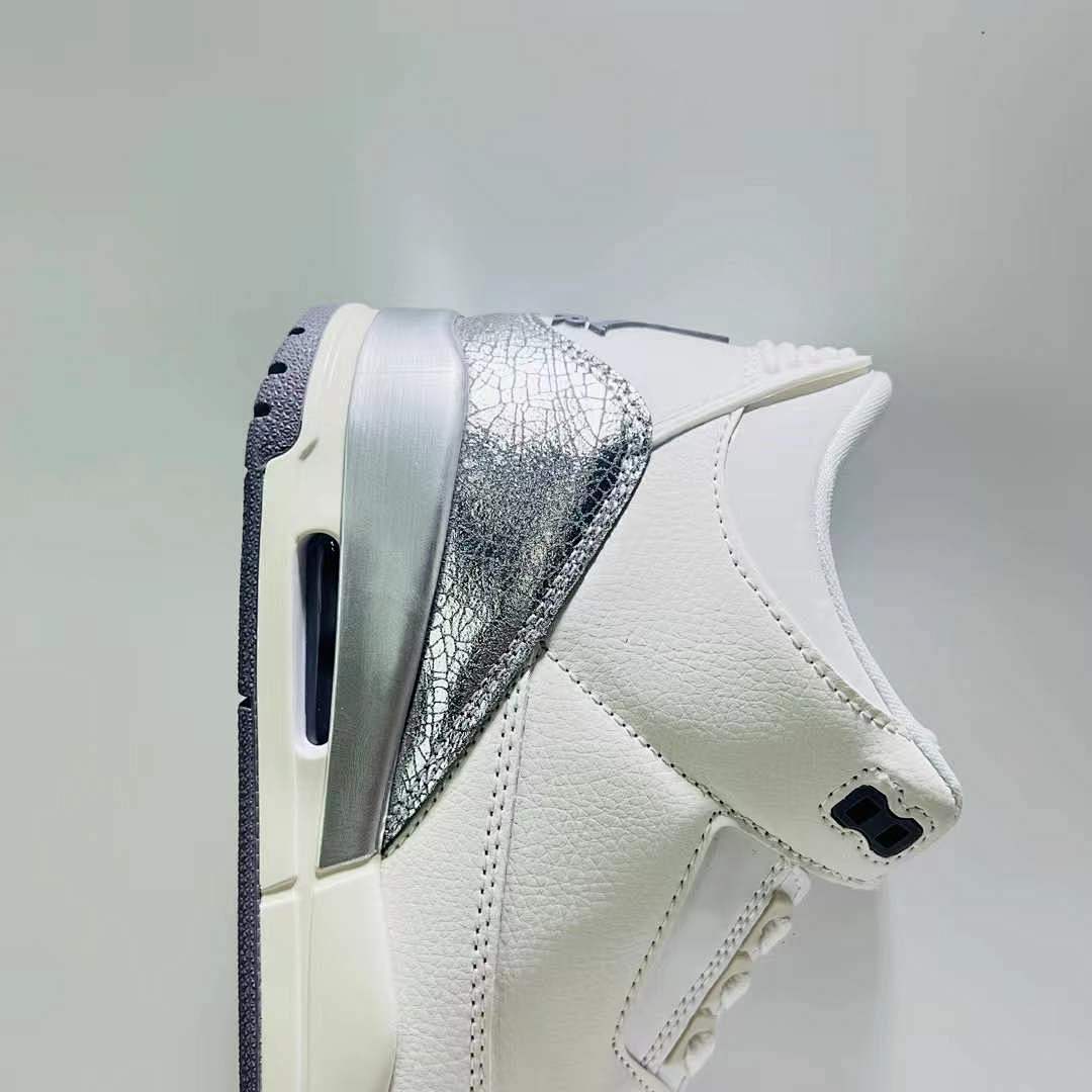 - Iconic Design Reimagined: Experience the legendary Air Jordan 3 silhouette enhanced with a shimmering ‘Metallic Silver’ cracked leather treatment that catches the light with every step.