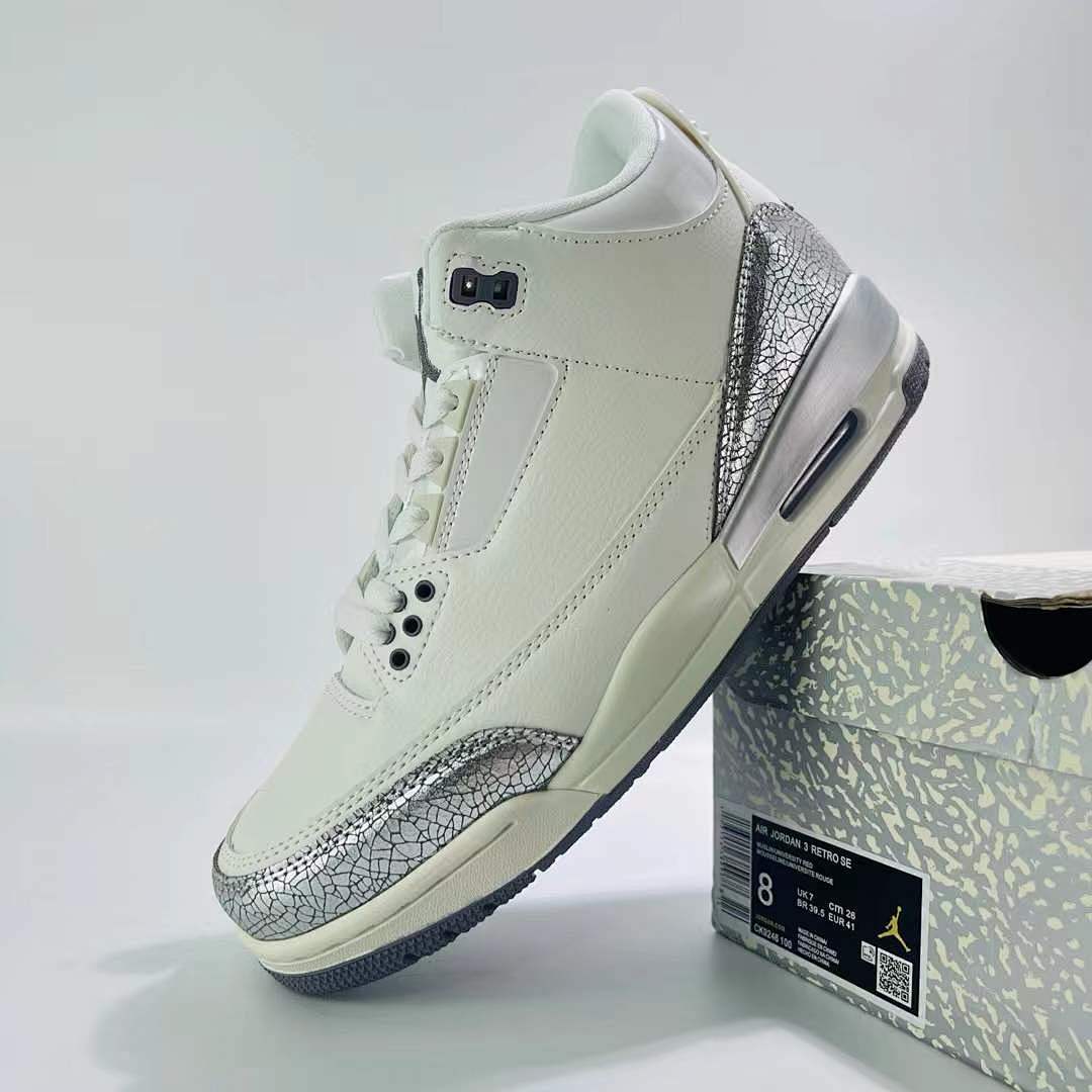 Nike Air Jordan 3 Retro WMNS ‘Metallic Silver’ White Cracked Silver Shoes CK9246-100