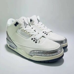 Step into an icon reimagined with the exquisite Nike Air Jordan 3 Retro WMNS ‘Metallic Silver’. This stunning release brings a fresh, luxurious twist to a legendary silhouette, perfectly blending heritage basketball style with contemporary street fashion. Crafted for the discerning sneaker enthusiast, this edition elevates your look with its unique cracked silver details and premium finishes, ensuring you stand out with unparalleled elegance and the timeless comfort Jordan Brand is known for. Perfect for collectors and trendsetters alike, these shoes are more than just footwear—they’re a statement.