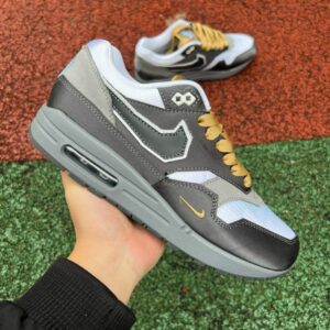Step into a legend reborn with the Nike Air Max 1 Patta Waves Dark Grey Light Blue Gold. This highly coveted collaboration between Nike and Amsterdam’s iconic Patta boutique reimagines the timeless Air Max 1 silhouette with an unmistakable wave-like mudguard, making it a true masterpiece for collectors and style connoisseurs alike. Experience the perfect blend of heritage design, premium craftsmanship, and unparalleled comfort, engineered to elevate your streetwear game and make a definitive statement with every step.