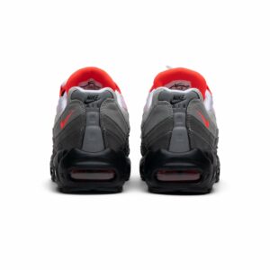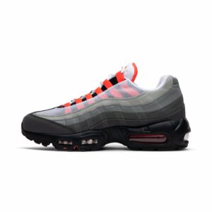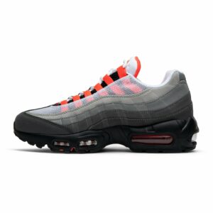 The Nike Air Max 95 OG Solar Red 2018, also known as the Solar Red, is a classic sneaker from Nike. With its iconic design and solar red accents, these shoes are both stylish and comfortable. The white colorway adds a clean and fresh look to any outfit. Perfect for casual wear or athletic activities, these Air Max 95s are a must-have for sneaker enthusiasts.