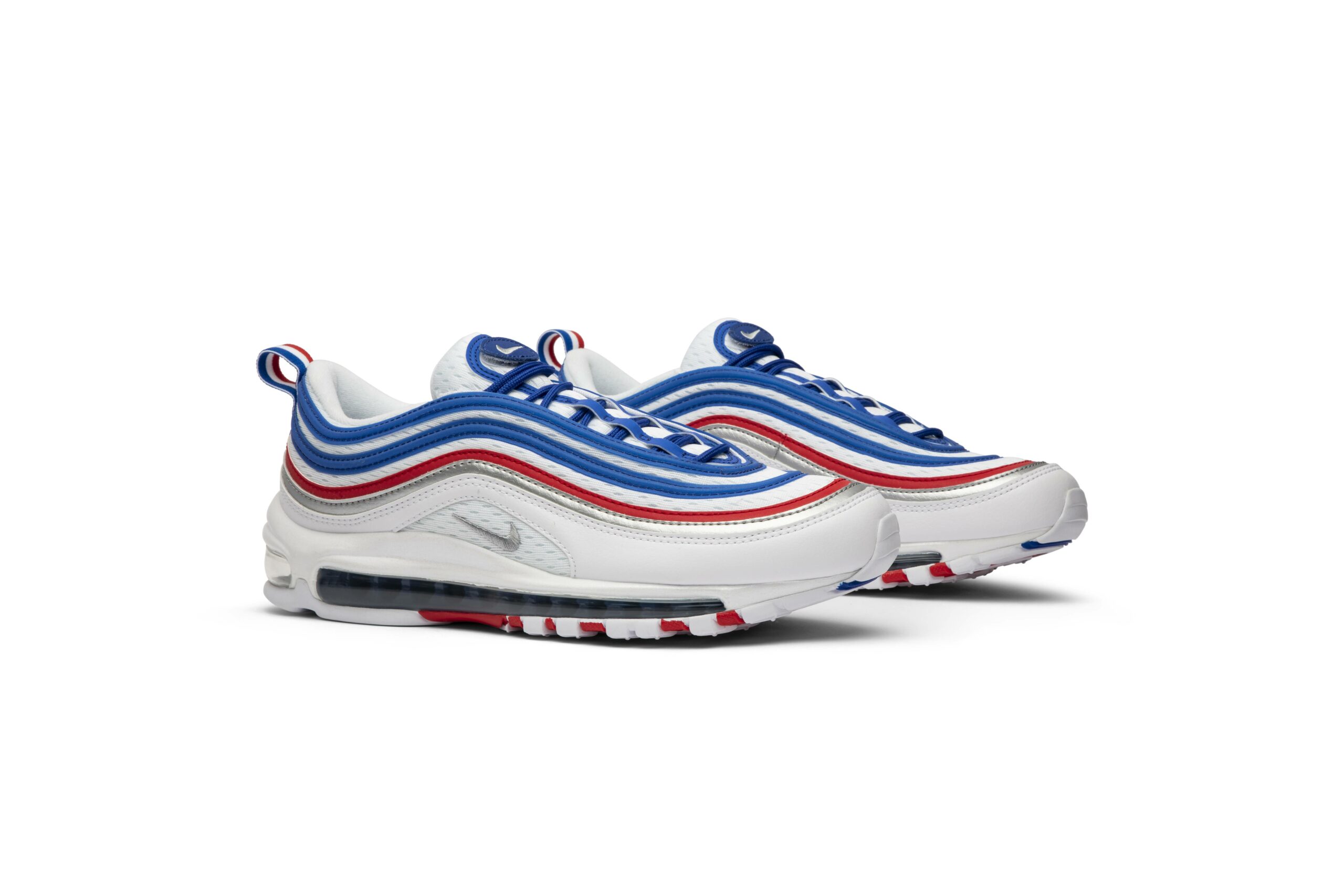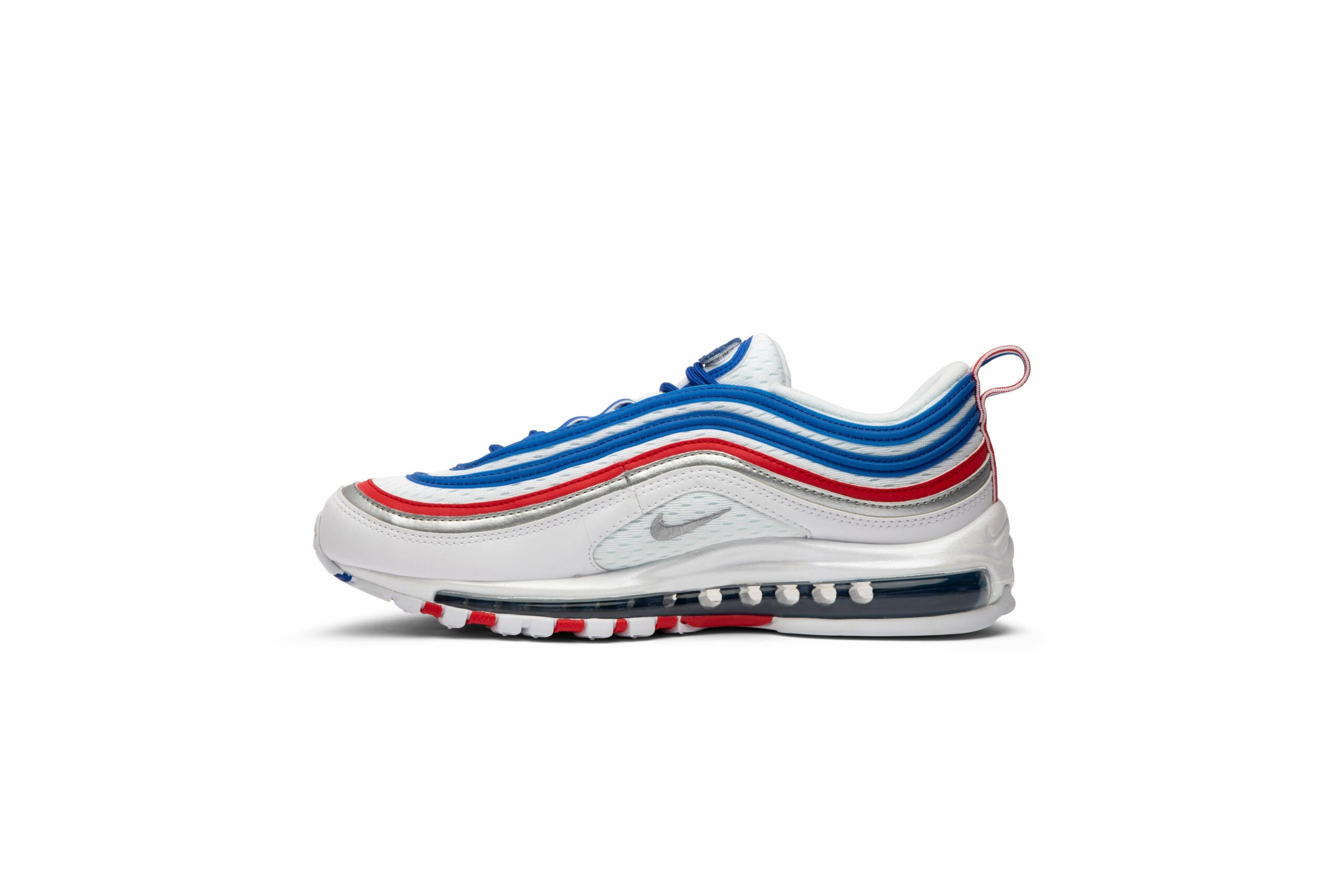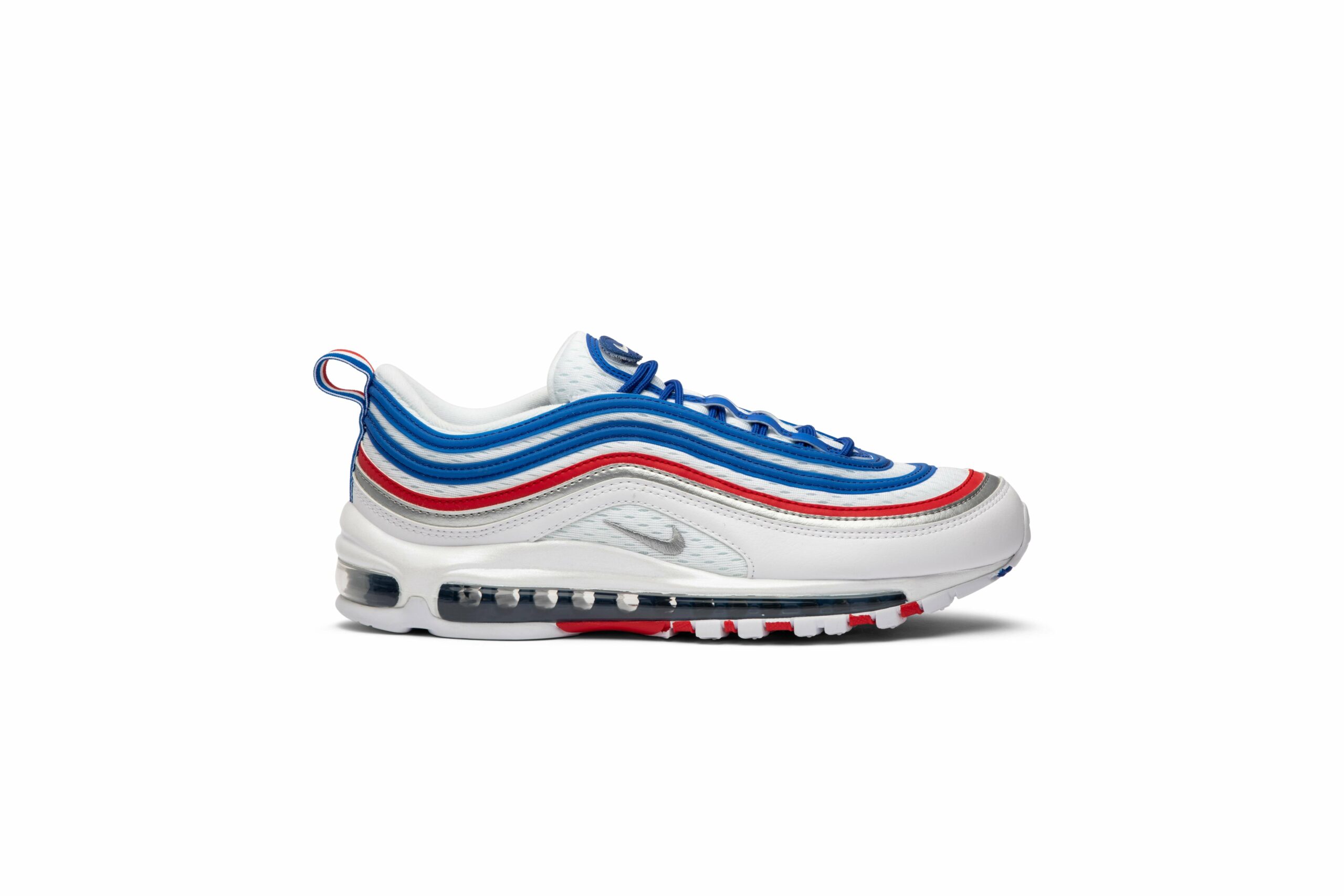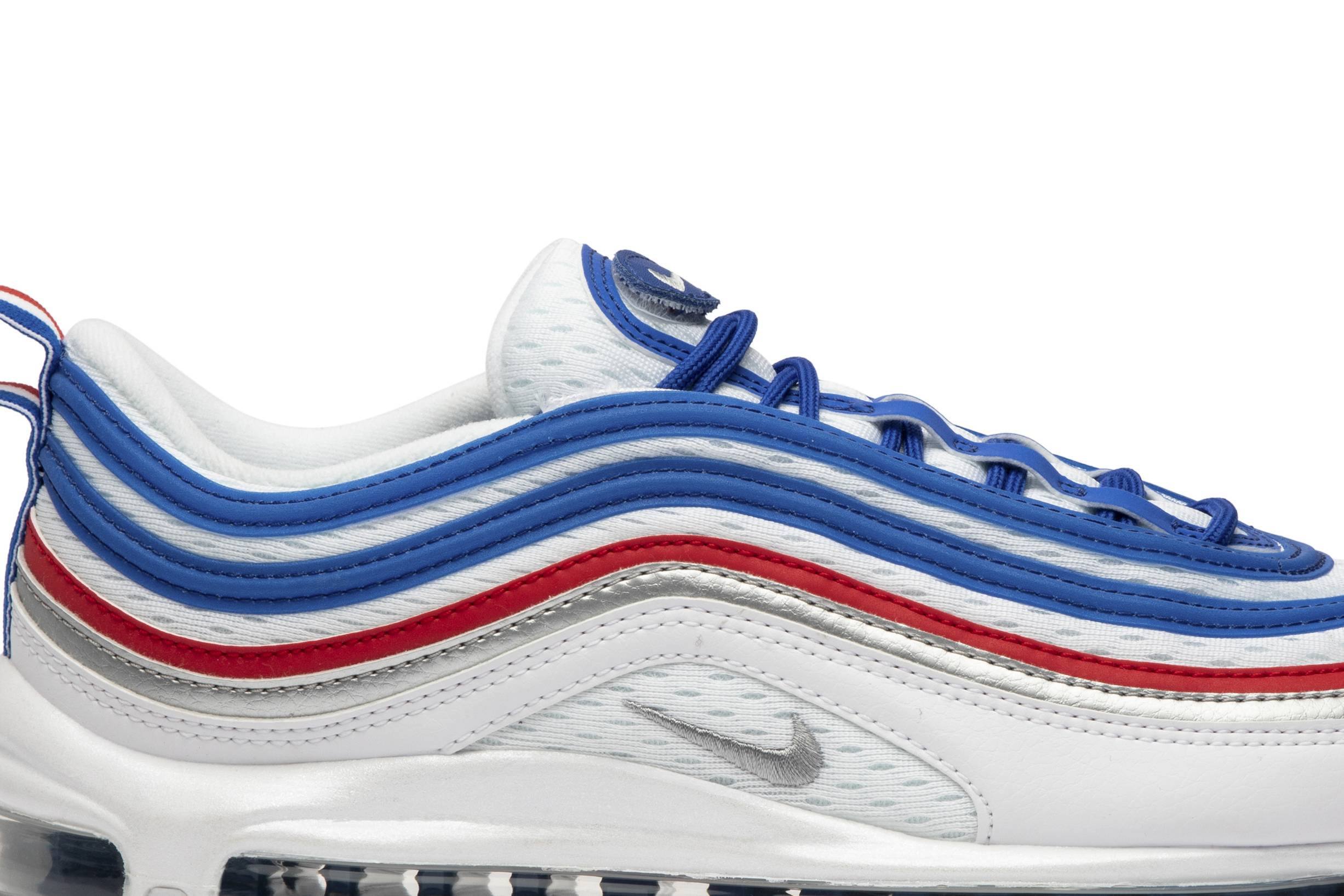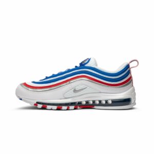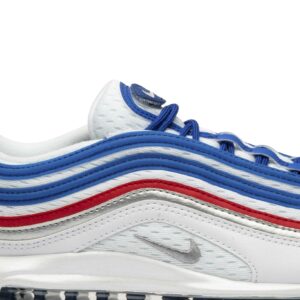 The Nike Air Max 97 Game Royal Metallic Silver University Red, also known as the All Star Jersey, combines comfort and style. With its white color and sleek design, these shoes are perfect for any occasion. Made by Nike, a trusted brand in the industry, you can trust that these sneakers are made with quality materials to last. Step up your game with the Nike Air Max 97 Game Royal Metallic Silver University Red.