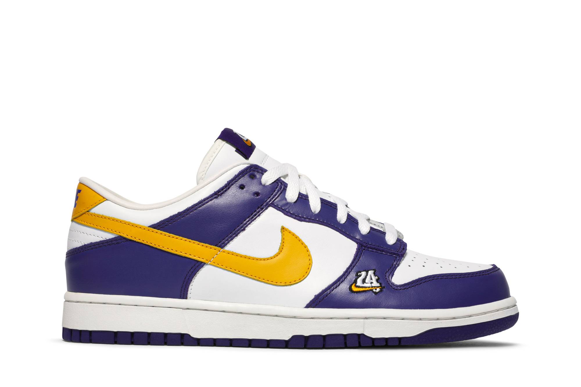 Introducing the Nike Dunk Low LA, a must-have for sneaker enthusiasts. Crafted by Nike, these iconic shoes feature a vibrant yellow colorway that is sure to turn heads. With its sleek design and comfortable fit, the Nike Dunk Low LA is perfect for both fashion and athletic wear. Add a touch of style to your collection with these stylish and versatile sneakers from Nike.
