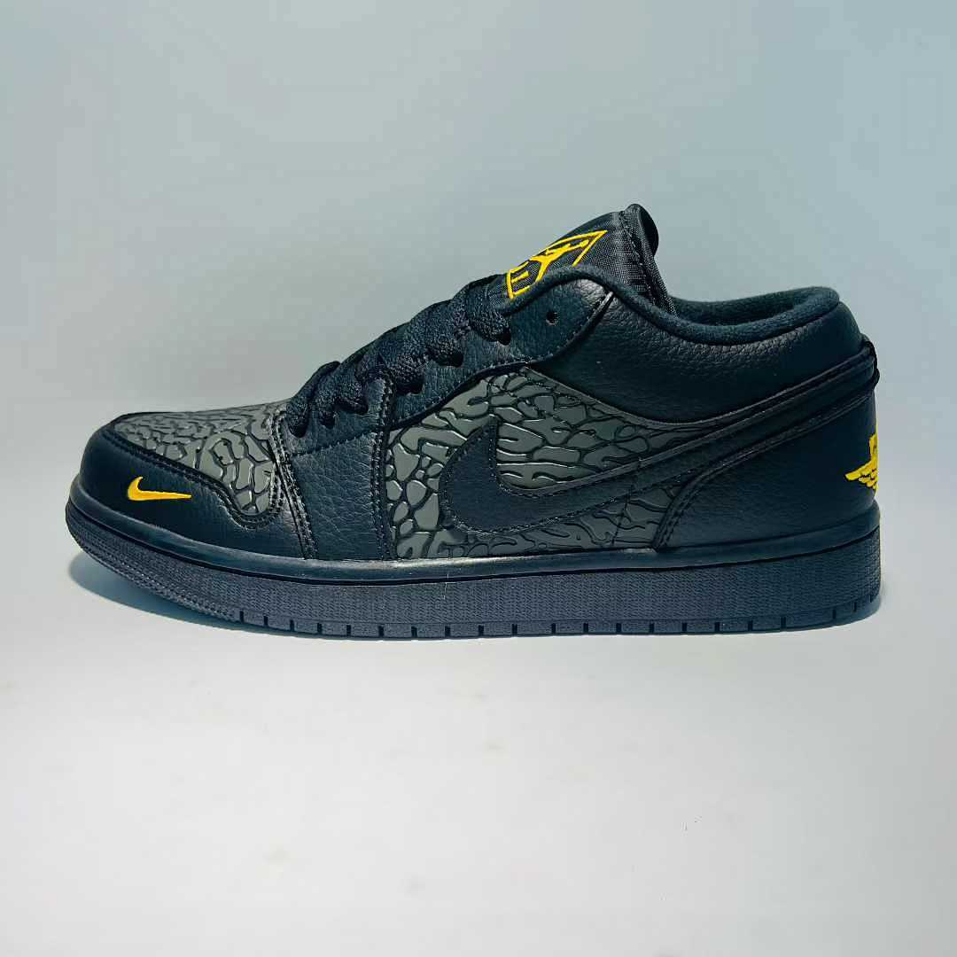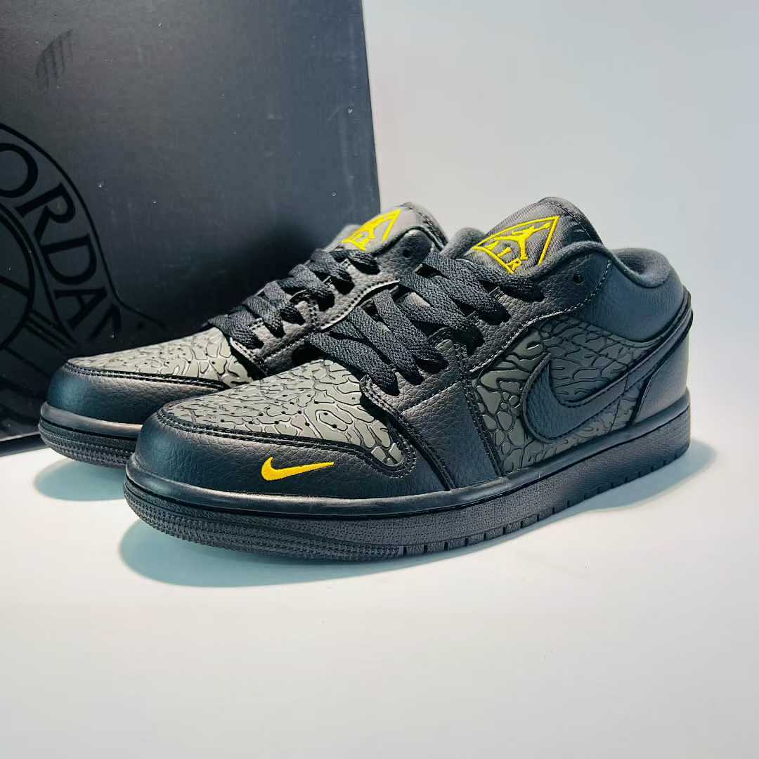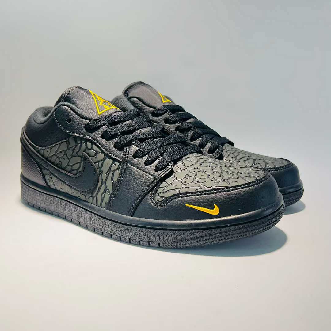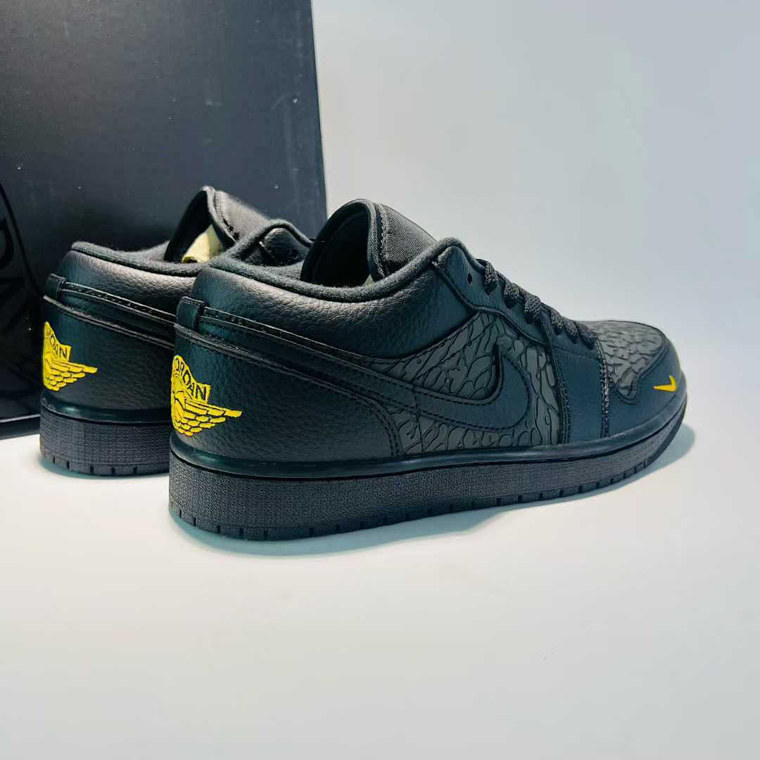 Nike Men’s Air Jordan 1 Low SE Craft Black Yellow Ochre Textured Sneakers FD8638-007