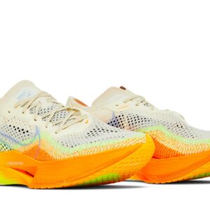 The Nike ZoomX VaporFly Next% 3 Sail Orange sneakers feature a stylish design and innovative technology for a comfortable and high-performance running experience. With its ZoomX cushioning and durable construction, these sneakers are perfect for athletes looking to improve their speed and endurance. With the iconic Nike brand, these sneakers are sure to turn heads on and off the track.