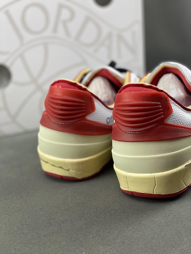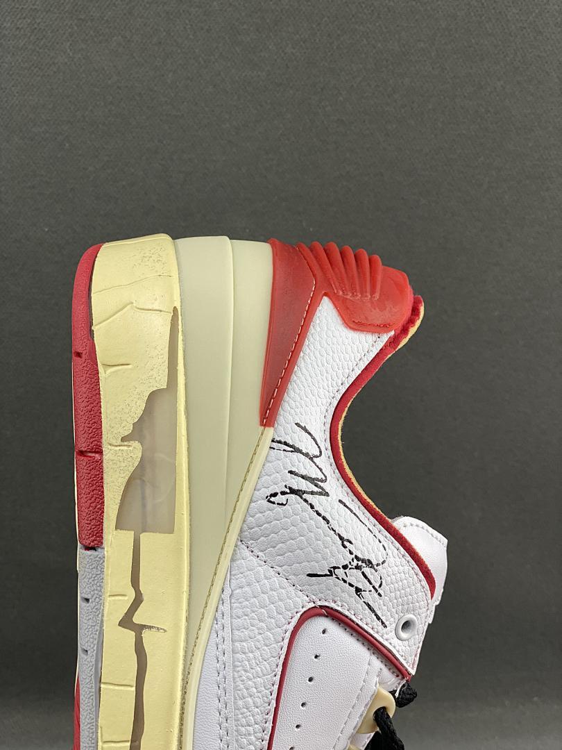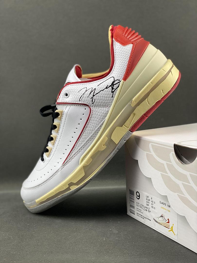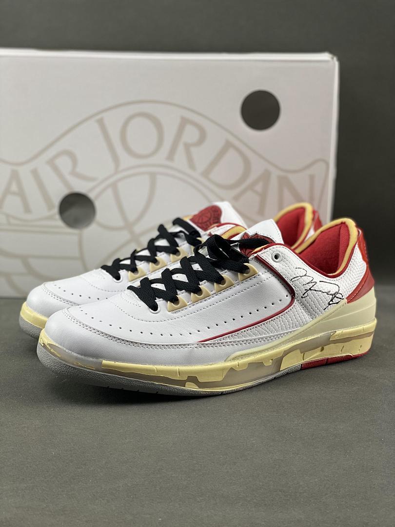 Off-White x Air Jordan 2 Retro Low SP White Varsity Red DJ4375-106 Michael Jordan Signature Aged Sole Sneakers