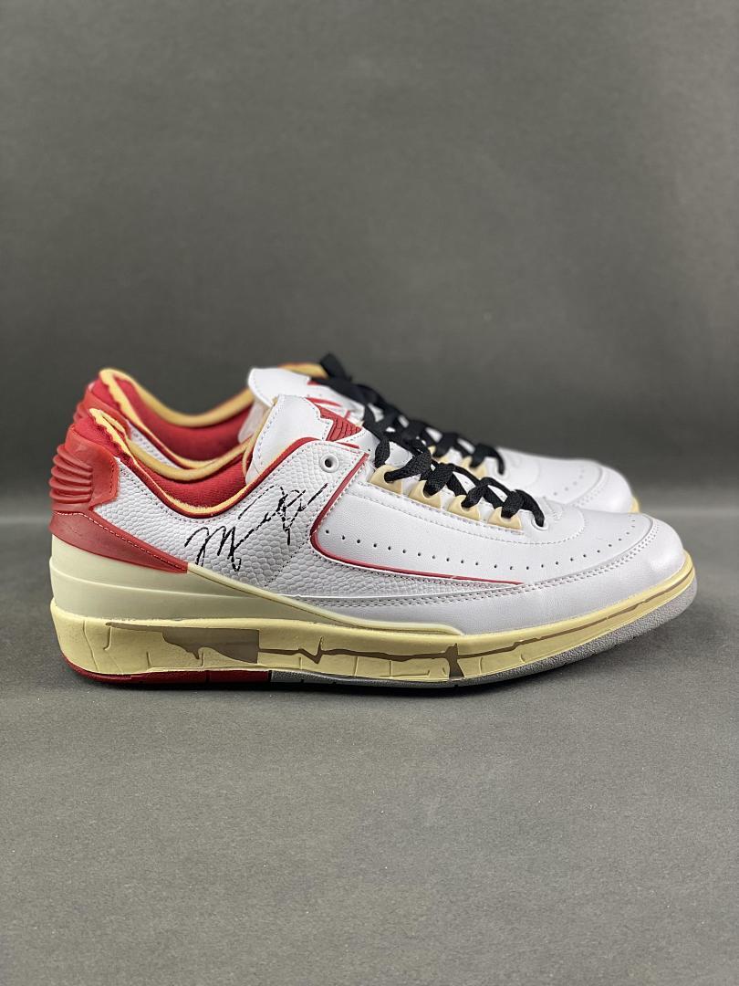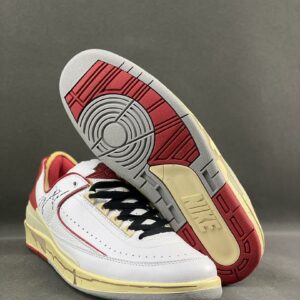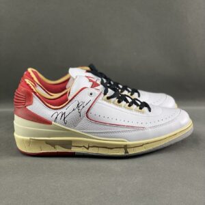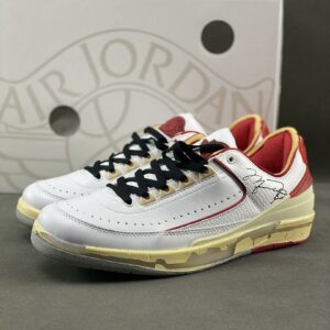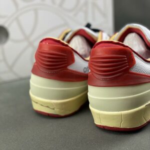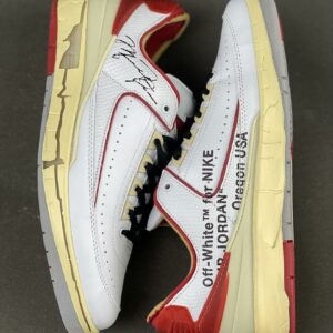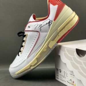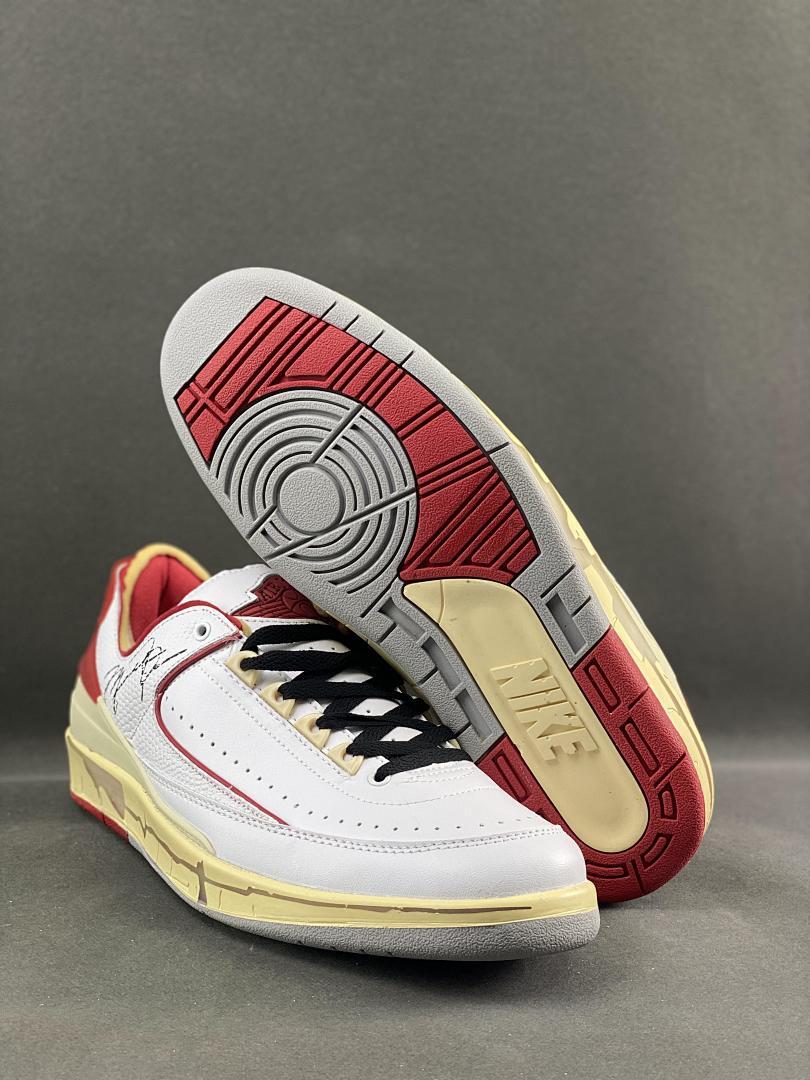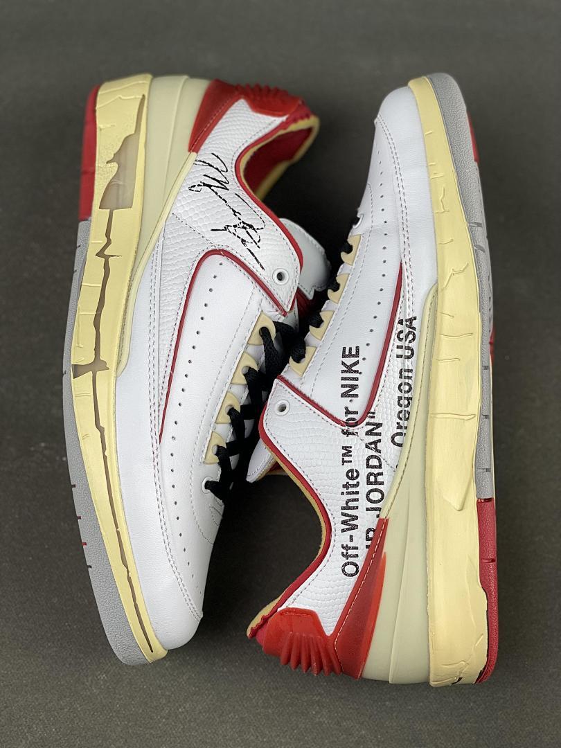 Off-White x Air Jordan 2 Retro Low SP White Varsity Red DJ4375-106 Michael Jordan Signature Aged Sole Sneakers