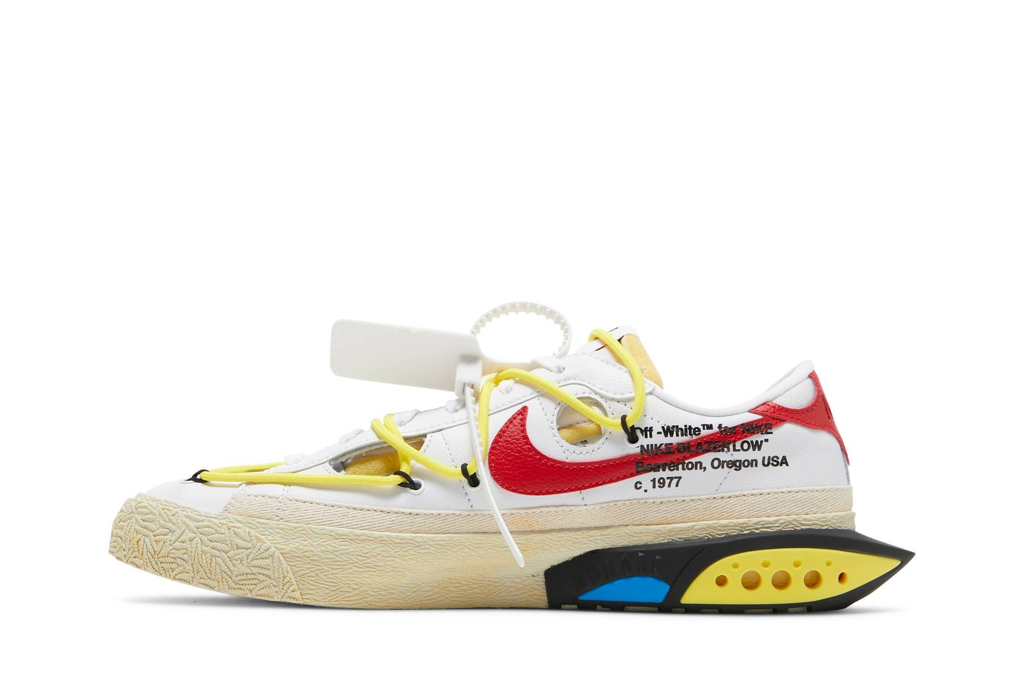 The Off‑White x Nike Blazer Low White sneakers, from the Nike brand, offer a sleek and stylish design that is perfect for any outfit. These sneakers are made with high-quality materials to ensure durability and comfort. With their iconic white color and Off‑White branding, these sneakers are perfect for sneakerheads and fashion enthusiasts alike.