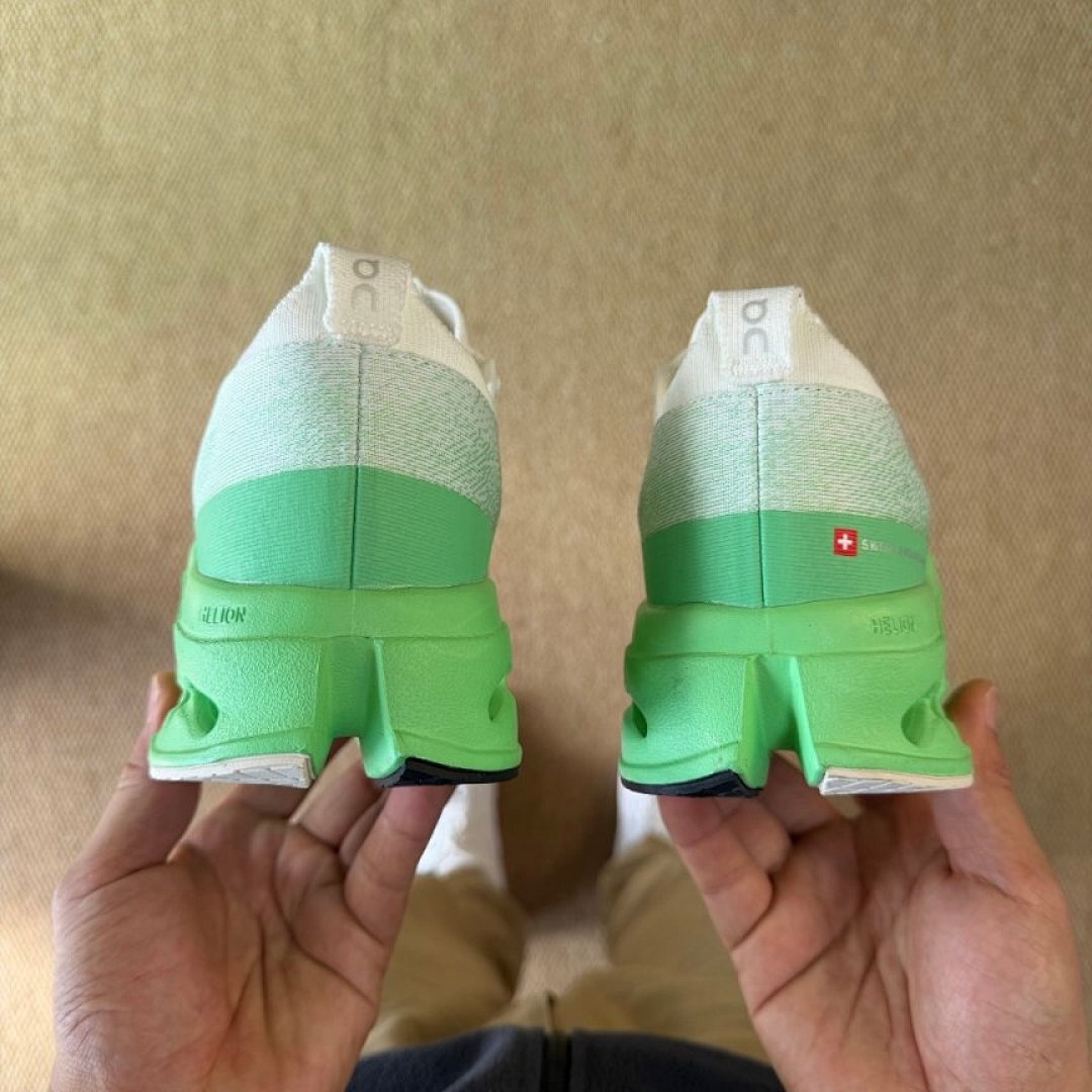 On Running Cloudmonster Men’s Women’s Max Cushion Road Running Shoes – White Lime Green