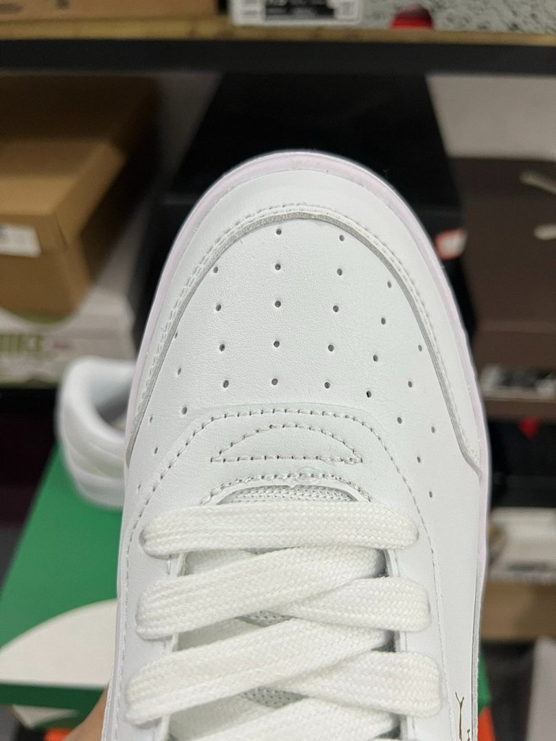 - Striking White & Gold Colorway: Stand out with a pristine white upper beautifully contrasted by subtle yet luxurious gold accents, adding a touch of sophistication to your ensemble.