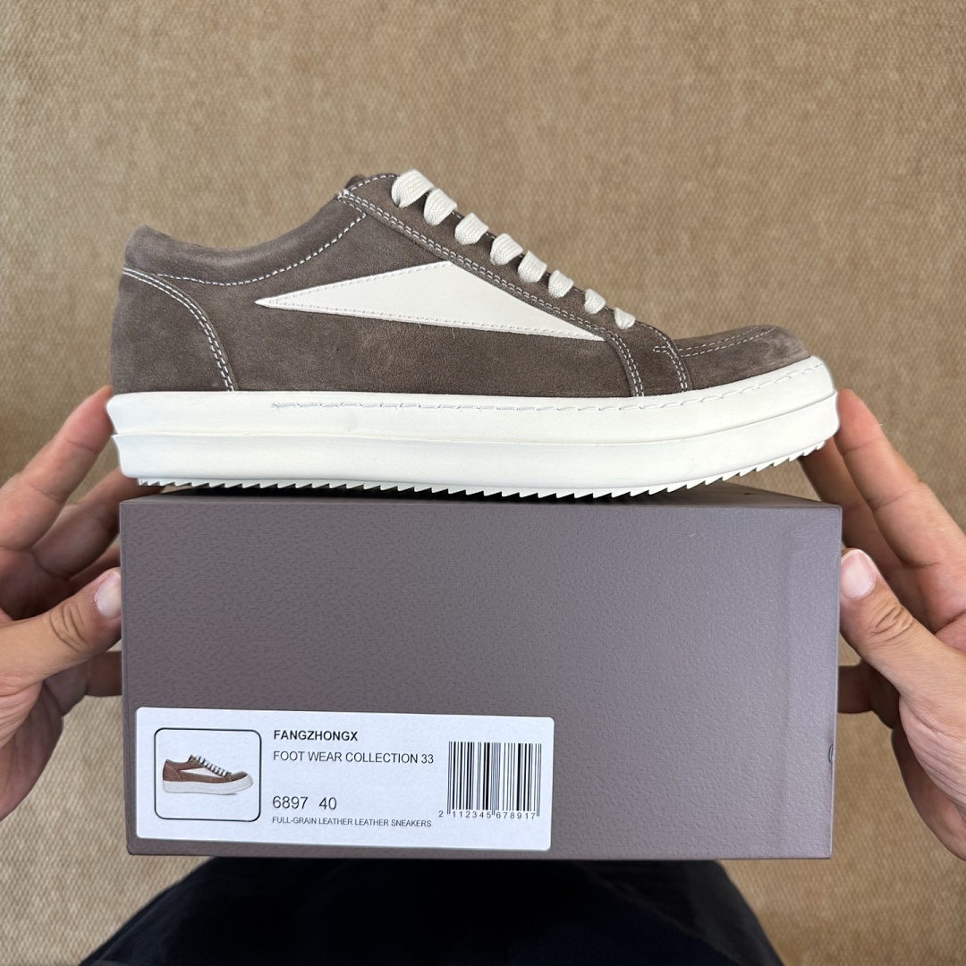Rick Owens DRKSHDW Abstract Low Top Suede Sneakers – Dark Dust Milk