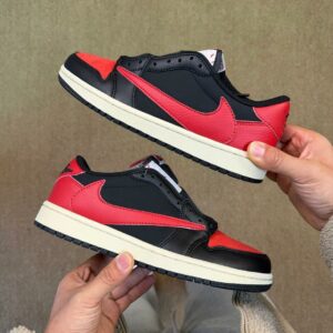 - Iconic Reverse Swoosh: Scott’s signature design element boldly redefines the classic Air Jordan 1 silhouette, making it instantly recognizable.