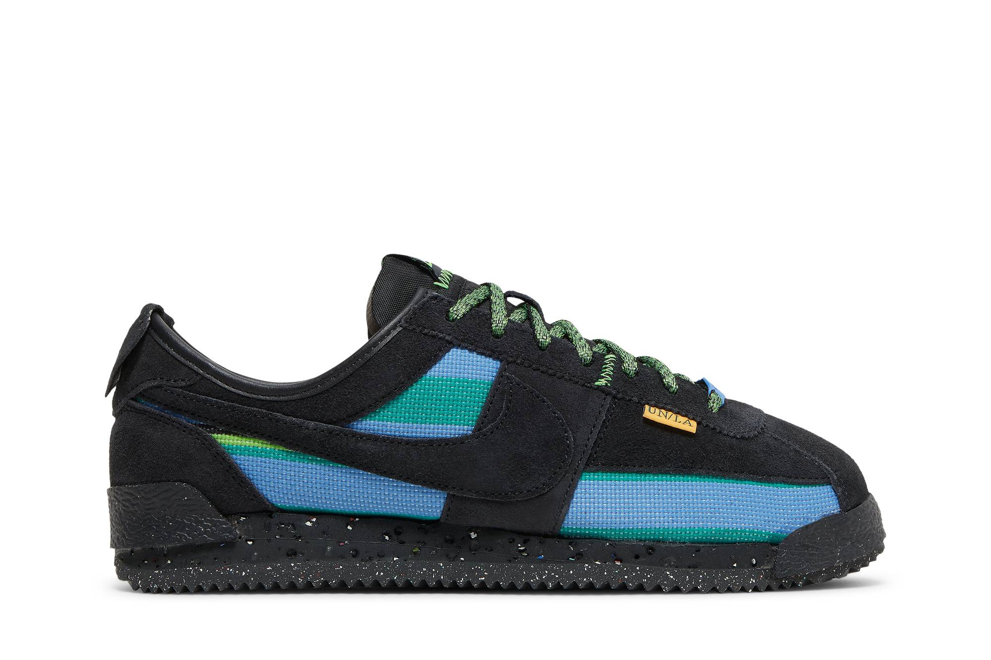 The Union LA x Nike Cortez Black sneakers, brought to you by Nike, are a stylish and versatile addition to any wardrobe. With their sleek black design, comfortable fit, and iconic Nike branding, these sneakers are perfect for both casual and athletic wear. Upgrade your sneaker game with this must-have collaboration between Union LA and Nike.
