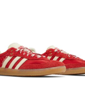 Introducing the Wales Bonner x adidas Samba Collegiate Orange sneaker. This collaboration between Wales Bonner and adidas combines sporty style with vibrant orange accents. The Samba’s classic design features a sleek leather upper and a durable rubber outsole, making it perfect for both casual and athletic wear. Step up your sneaker game with this limited edition release.