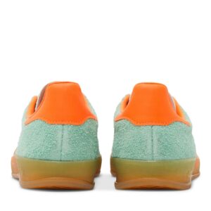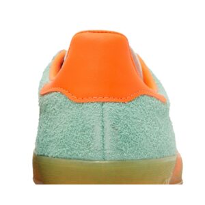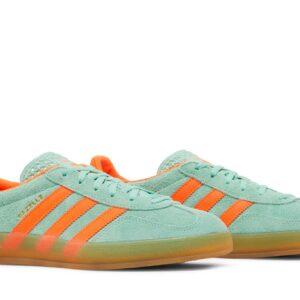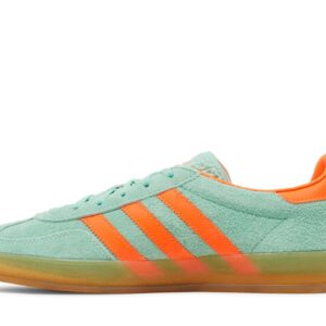 Introducing the adidas Gazelle Indoor Pulse Mint Solar Orange sneakers for women. These stunning shoes, crafted by adidas, feature a vibrant combination of pulse mint and solar orange. With their comfortable fit and iconic style, the adidas Gazelle Indoor sneakers are a must-have for any sneaker enthusiast.