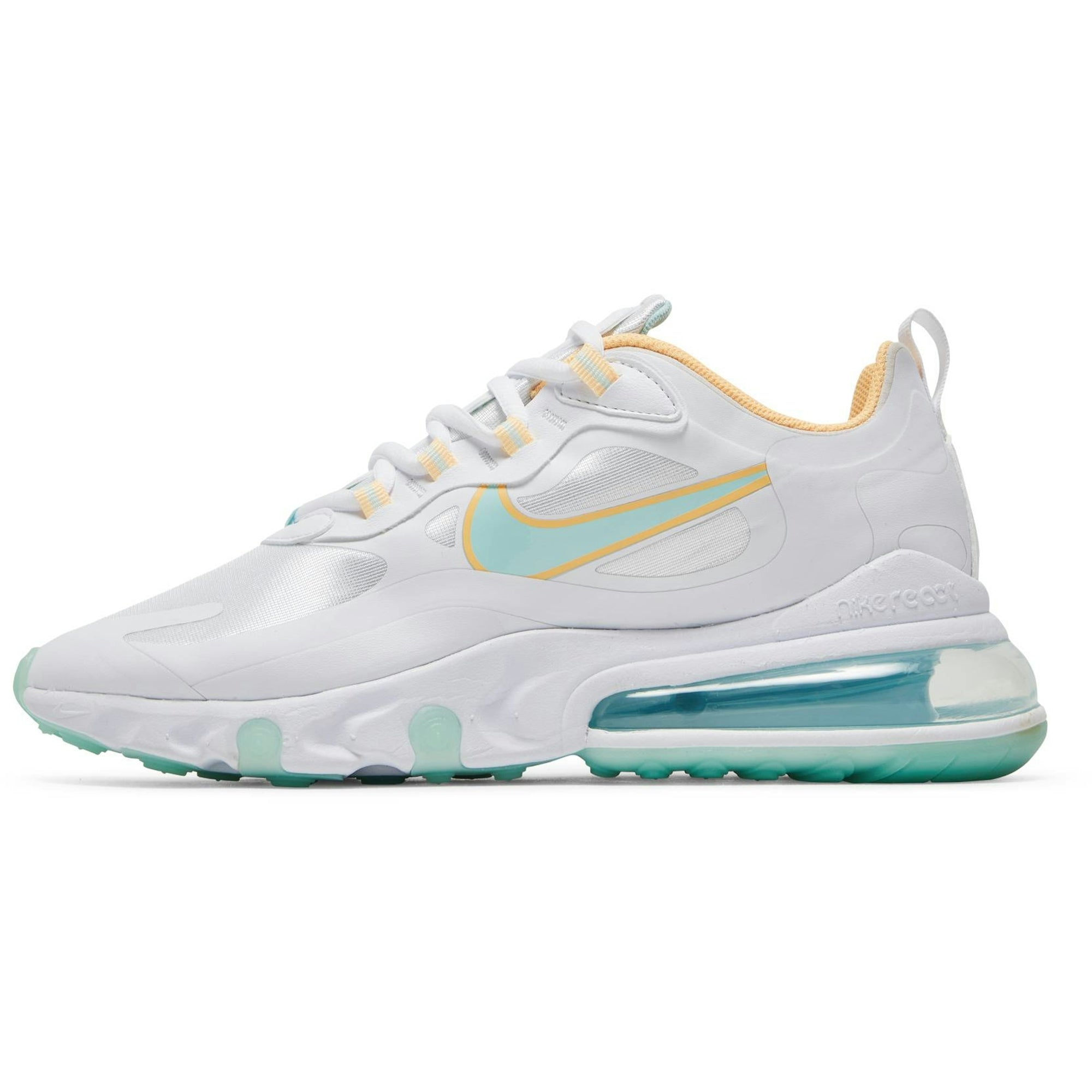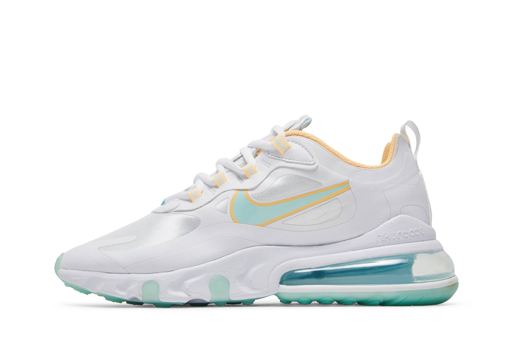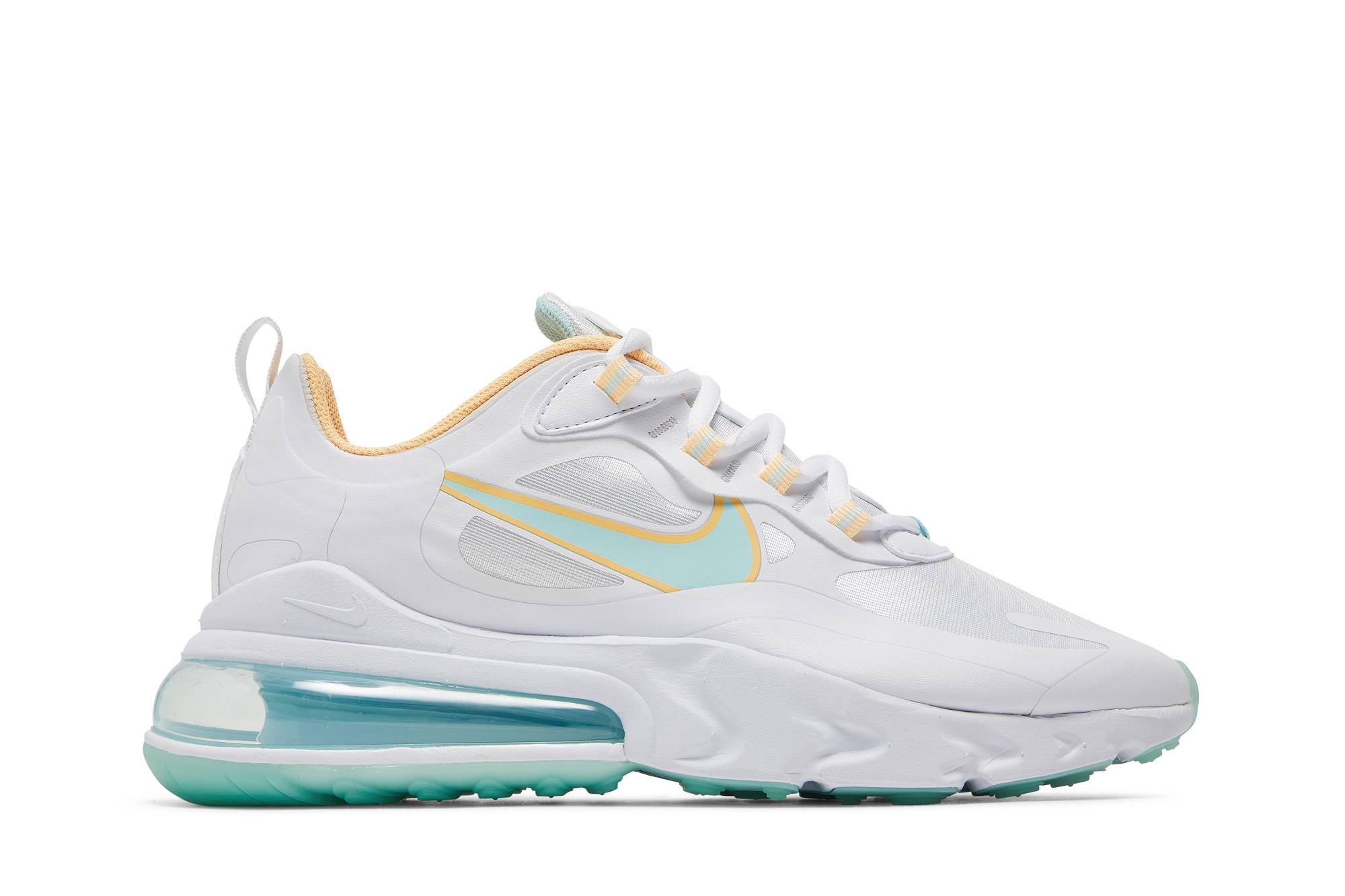 The Nike Air Max 270 React Light Dew Lagoon Pulse (WMNS) is a stylish and comfortable shoe designed for women. With its sleek white color and innovative React technology, these sneakers provide exceptional cushioning and responsiveness. Perfect for everyday wear or athletic activities, these Nike shoes combine fashion and functionality, making them a must-have addition to any wardrobe.
