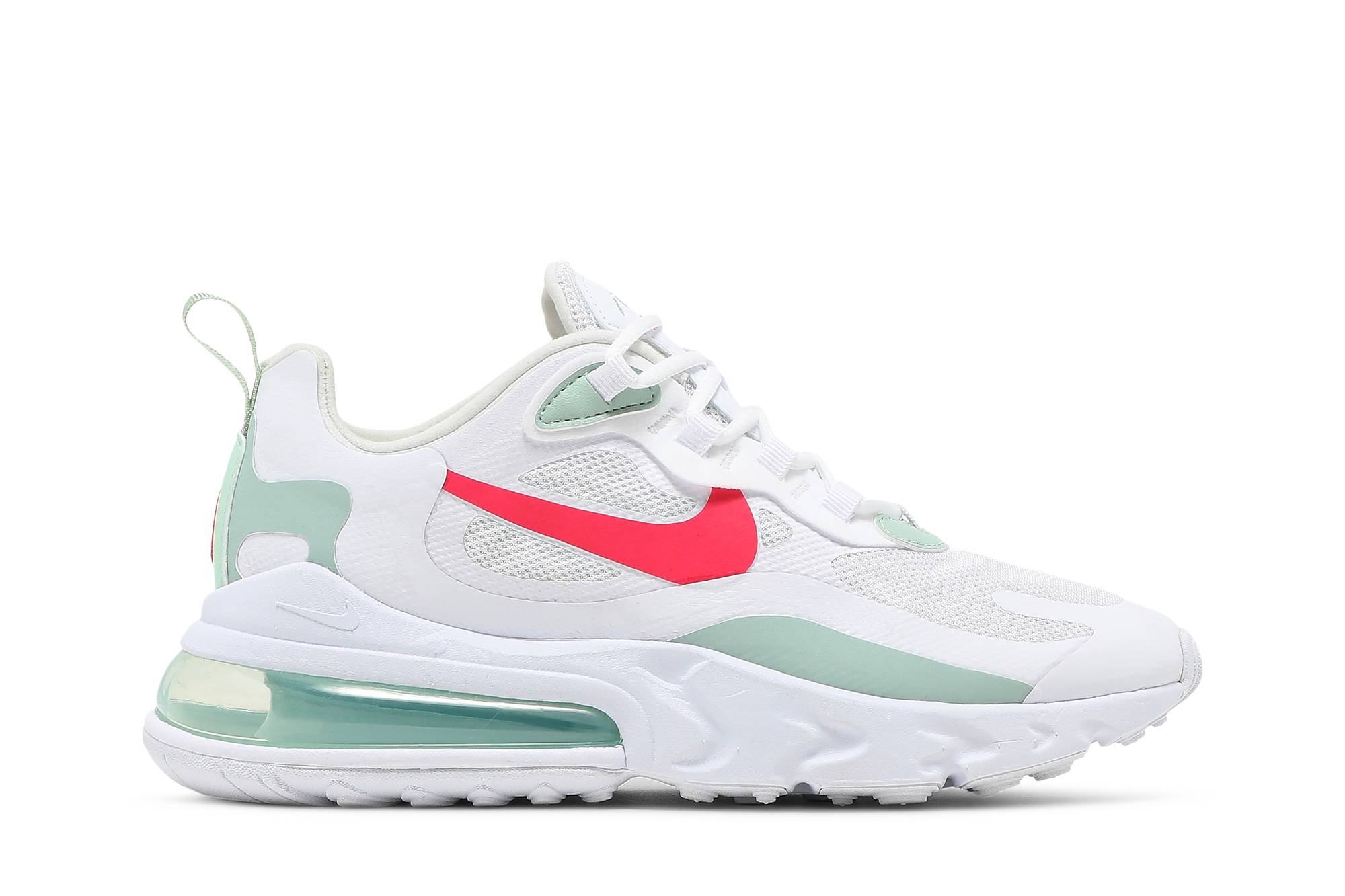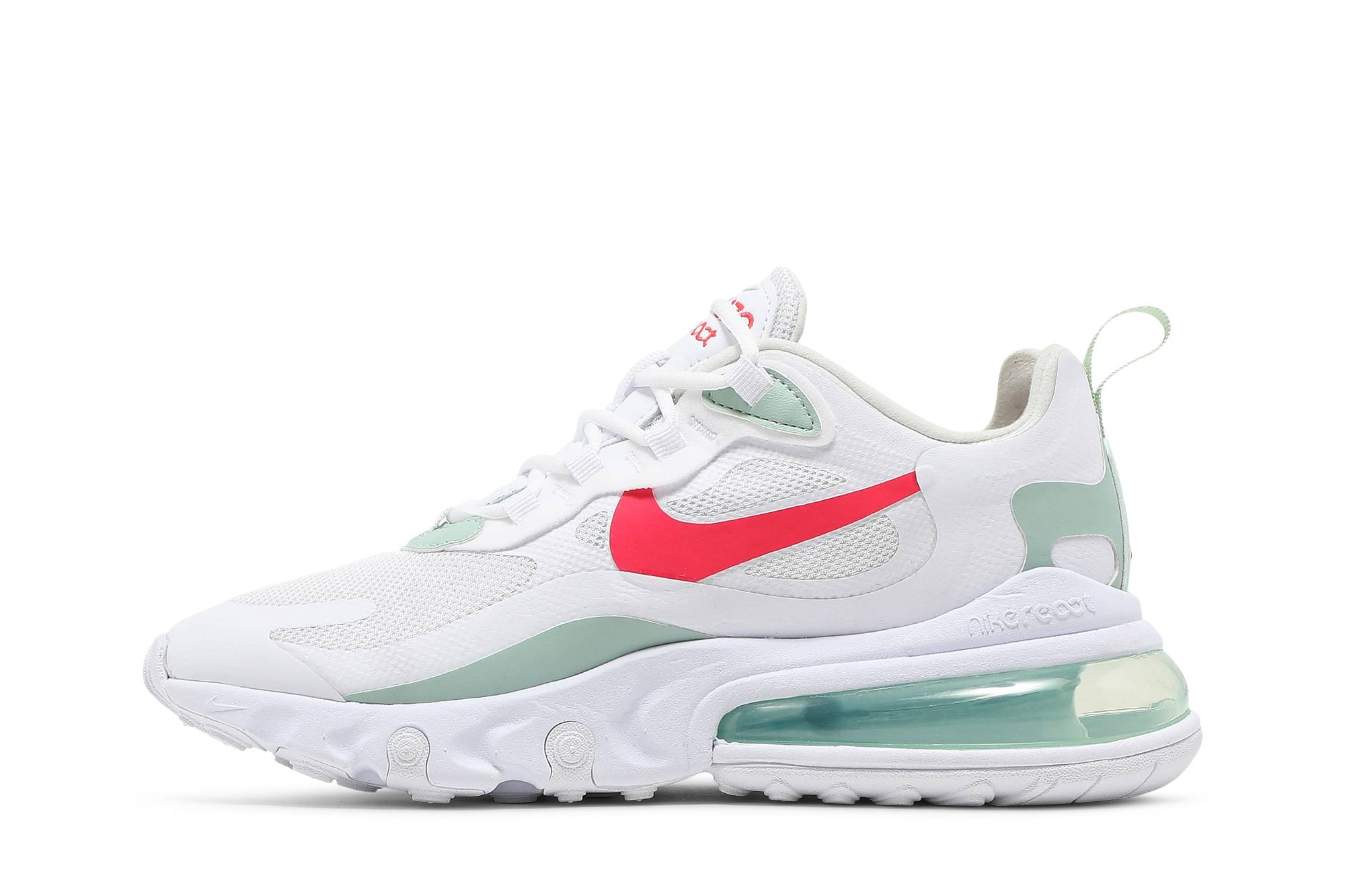 Experience optimum comfort and style with the Nike Air Max 270 React White Pistachio Crimson (WMNS) sneakers for women. With a sleek white color scheme accented by pistachio and crimson details, these Nike shoes are sure to turn heads. Designed with the latest React technology and Air Max cushioning, these sneakers provide supreme comfort for all-day wear. Whether you’re hitting the gym or running errands, the Nike Air Max 270 React White Pistachio Crimson (WMNS) is the perfect choice for any active woman.